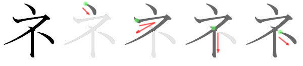 히라가나 'ね'는 초서체 '祢'에서 유래했다.[1] 가타카나 'ネ'는 해서체 '祢'에서 유래했으며, 간혹 '子'의 해서체에서 유래된 것으로 오인되기도 한다.