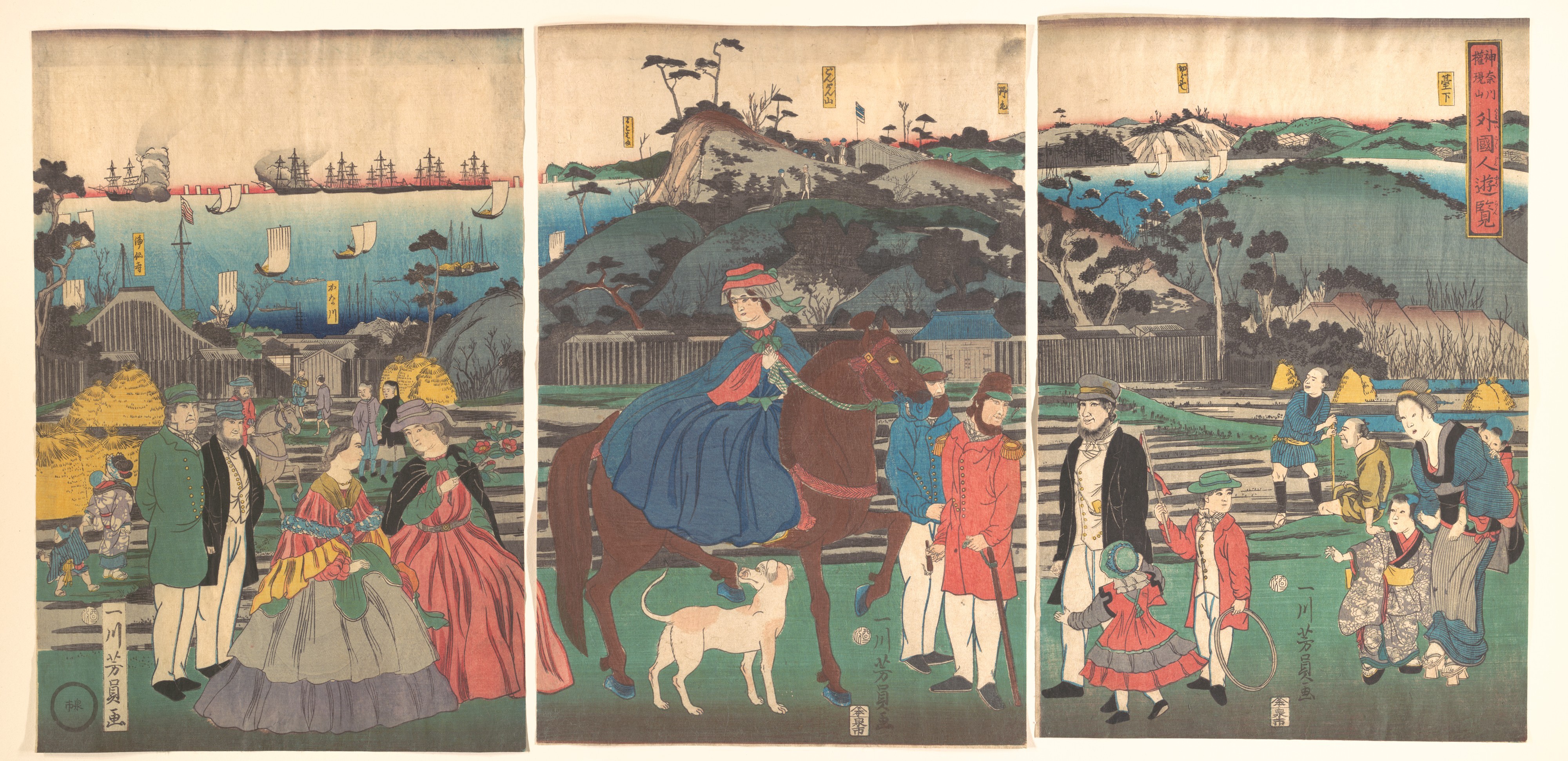 막말에는 가나가와슈쿠의 절을 임시로 사용하며 서양 국가의 영사관이 설치되었다[2]. 다이마치(台町)에서 바다를 내려다보는 조망은 십변사 잇쿠의 『도카이도 주 히자쿠리게』와 우타가와 히로시게의 우키요에에도 소개되어 명소로 꼽혔다. 가츠시카 호쿠사이의 『후가쿠 36경 가나가와 앞바다의 큰 파도』에도 가나가와 앞바다가 그려졌다. 또한, 미야스(아오키정의 해안, 현재의 사카에초)의 조개잡이도 명물이었다.