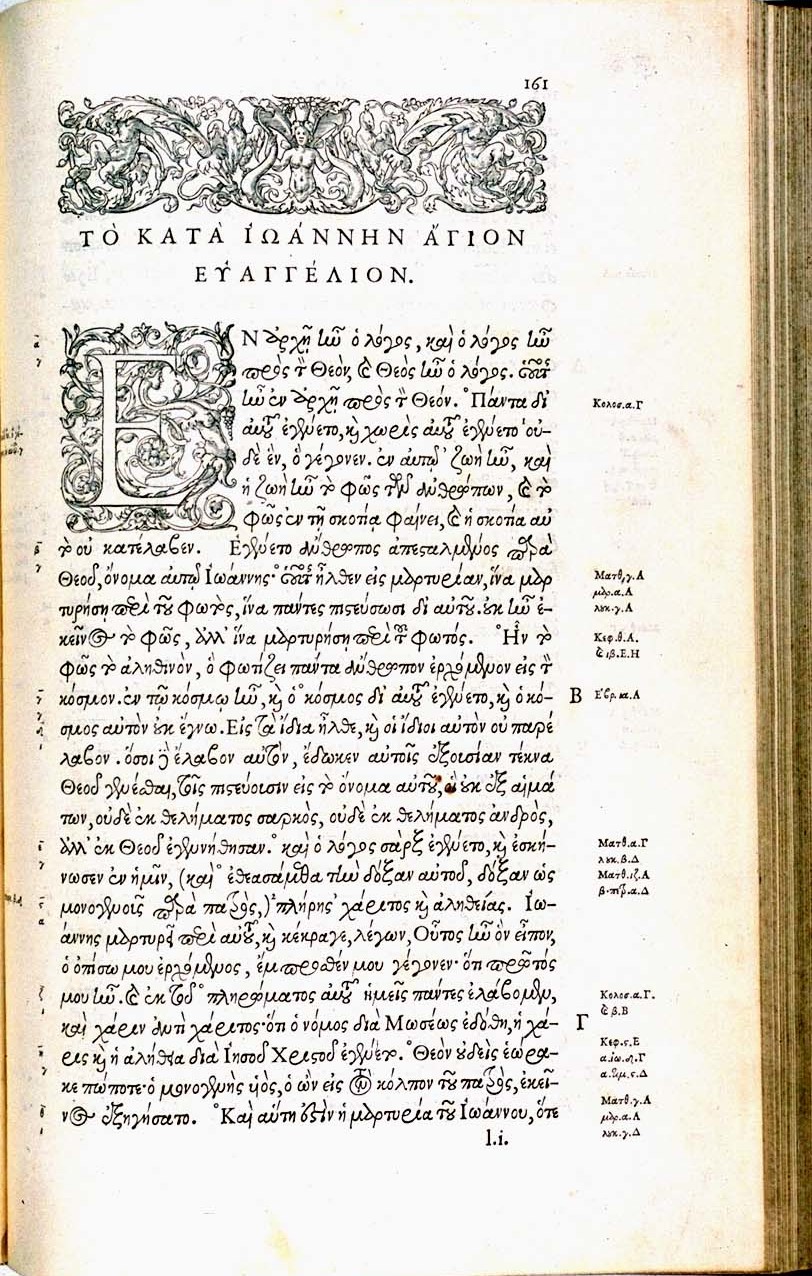 1540년, 가라몬은 로베르 에티엔의 인쇄에 사용될 프랑스 정부를 위해 그리스 문자체를 조각하기로 계약했다.[37] 그 결과로 탄생한 서체는 ''그렉 뒤 루아''로 알려졌으며, 합자와 전통적인 축약을 사용하여 글을 썼다.[38][39][40] 아서 오거스터스 틸리는 이 서체로 인쇄된 책들을 "존재하는 가장 완벽한 인쇄술 표본 중 하나"라고 불렀다.[41]