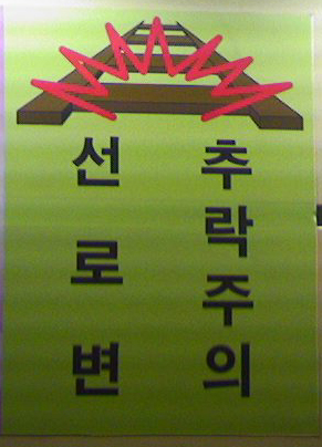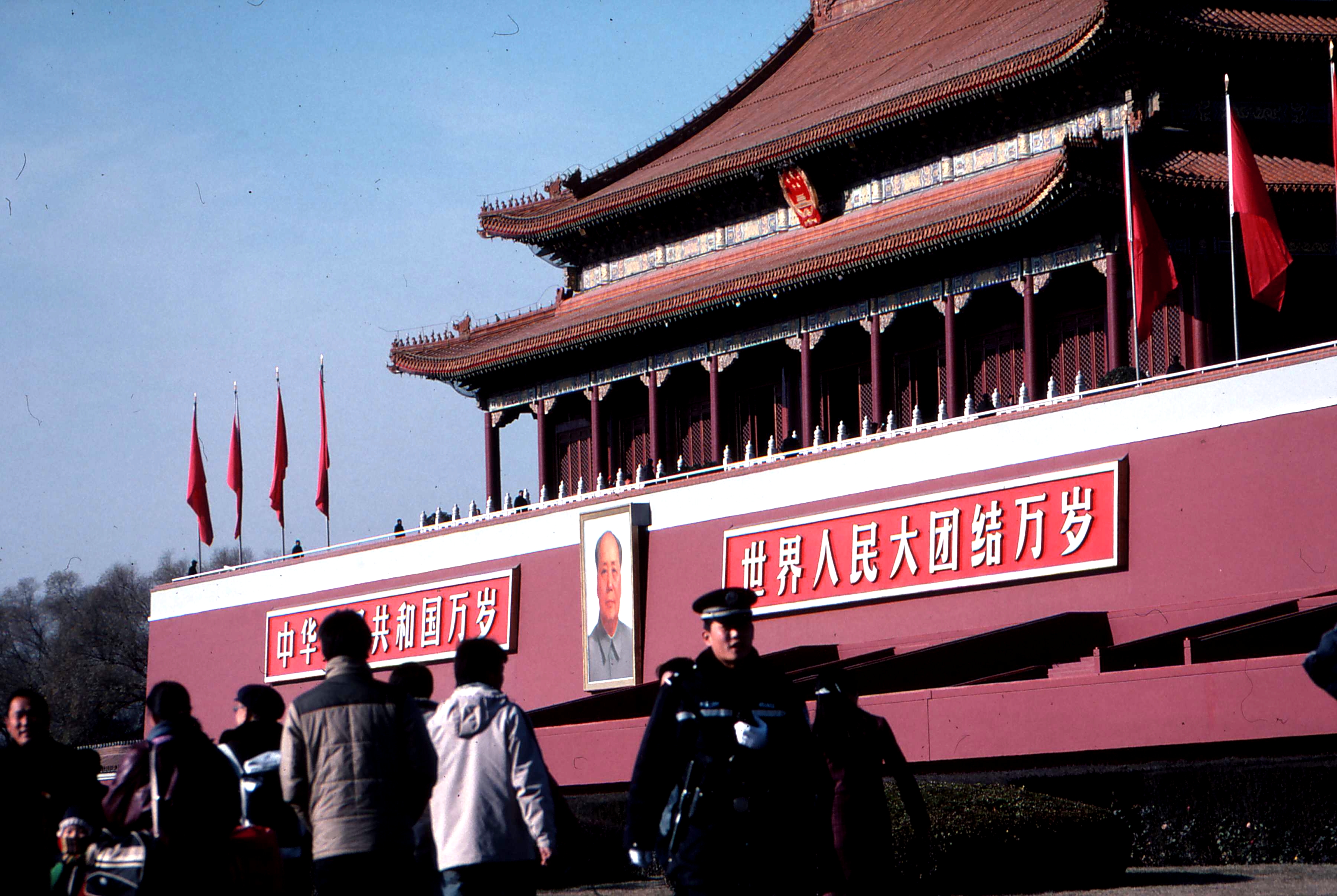 톈안먼의 표어(‘중화인민공화국 만세’와 ‘세계 인민 대단결 만세’)는 간체자로 좌횡서로 씌어 있다.