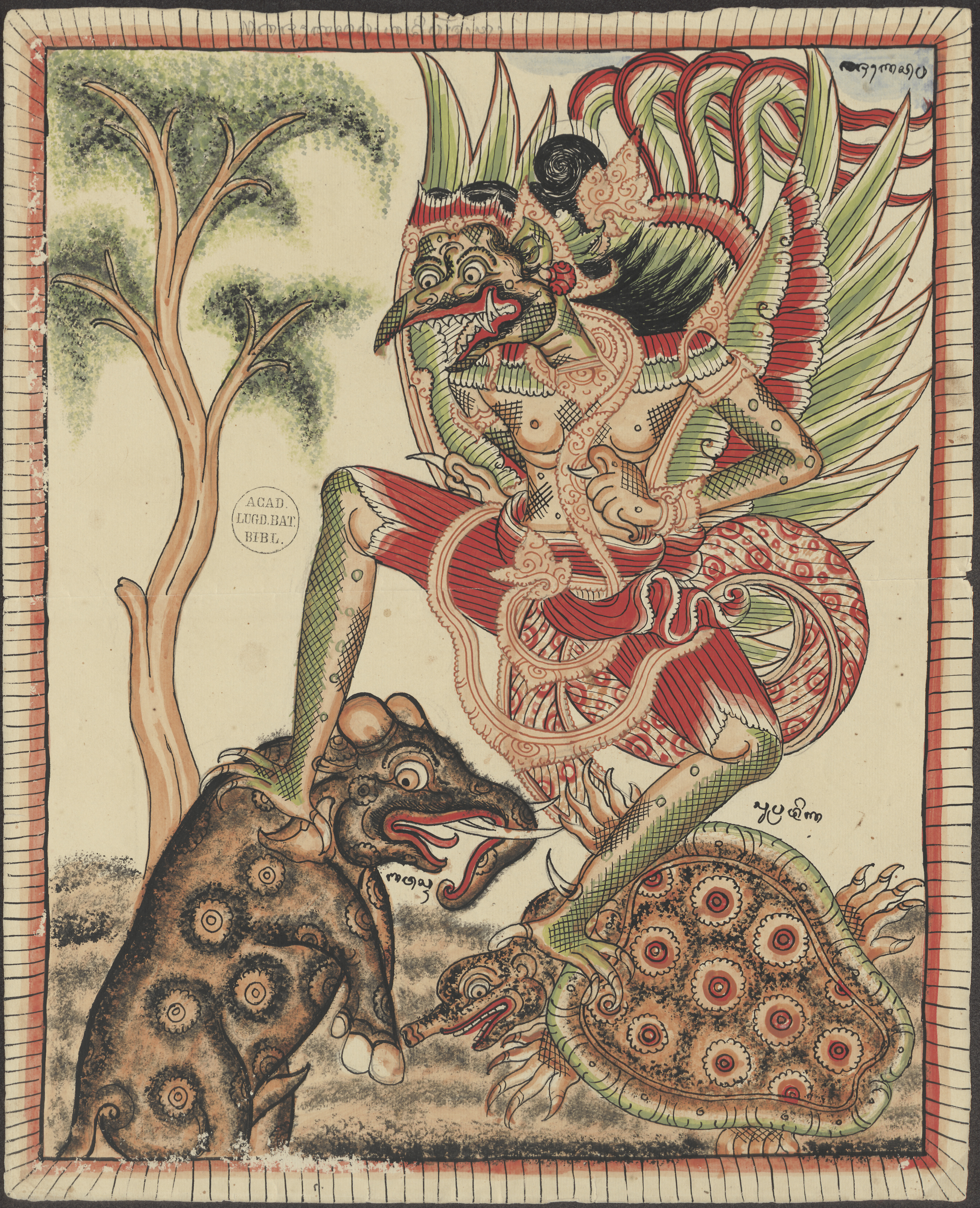 - 발리와 자바 - 가루다가 문화적 상징이 되었다. 가루다의 나무 조각상과 가면은 예술 작품과 기념품에서 인기 있는 요소이다.