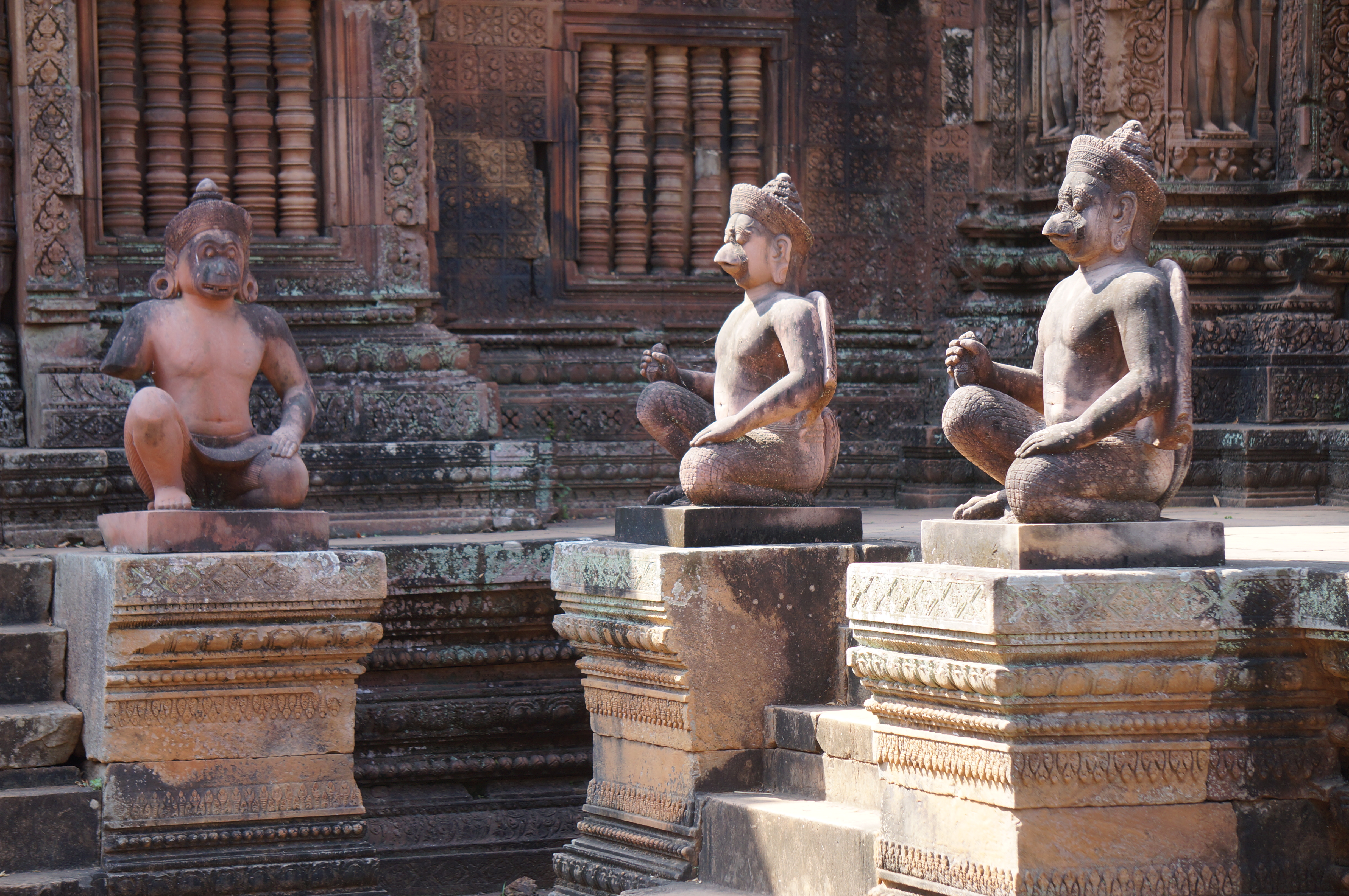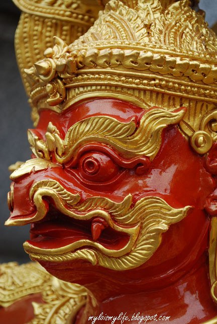 - 캄보디아: 크메르 건축가들이 고대부터, 특히 크메르 제국 시대부터 현재까지 사원, 비하라, 왓 및 많은 귀족 가옥에 가루다 조각상을 정교한 장식으로 사용해왔다. 가루다는 또한 많은 전설적인 이야기에서 비슈누의 탈것으로 언급되며, 주요 라이벌은 나가이다.[37]