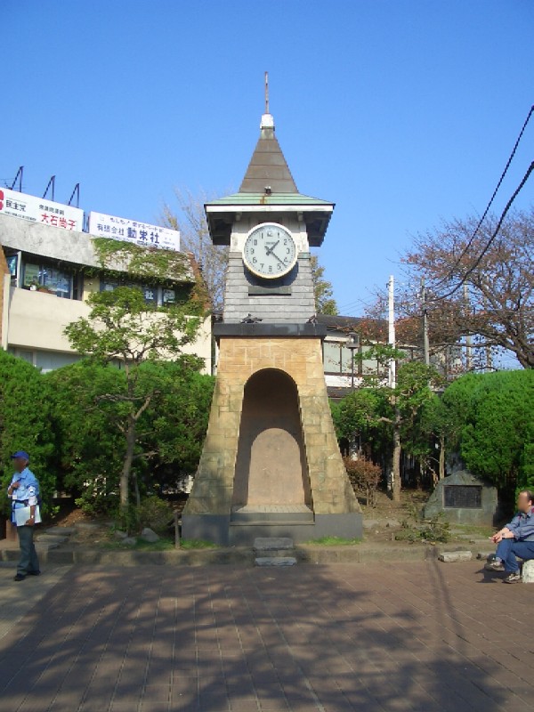 서쪽 출구 광장에 있는 가마쿠라역 구 역사의 시계탑. 현재의 역으로 개축될 때 시민들의 요청에 의해 보존되었다(2004년 11월 9일).
