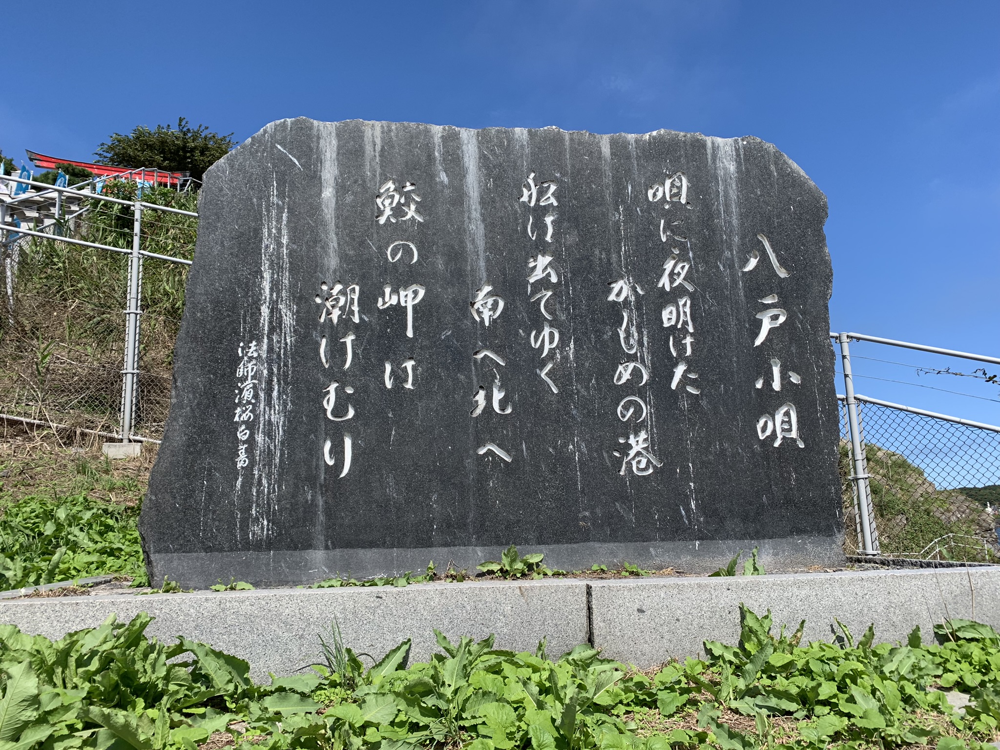 하치노헤시가 1931년에 제작하고 1932년에 발표한 신민요 "하치노헤 소우타"에서는 "섬의 갈매기는 누구를 기다리는가" 등의 구절로 가부시마섬과 괭이갈매기가 노래 불려지고 있다. 1973년 8월[11]에는 가부시마 신사 참배길 옆에 "하치노헤 소우타"의 첫 번째 가사를 새긴 민요비가 건립되었다. 하이쿠 시인 호시하마 오하쿠가 썼으며, 제목과 가사에 이어 "호시하마 오하쿠 서(書)"라고 새겨져 있다.