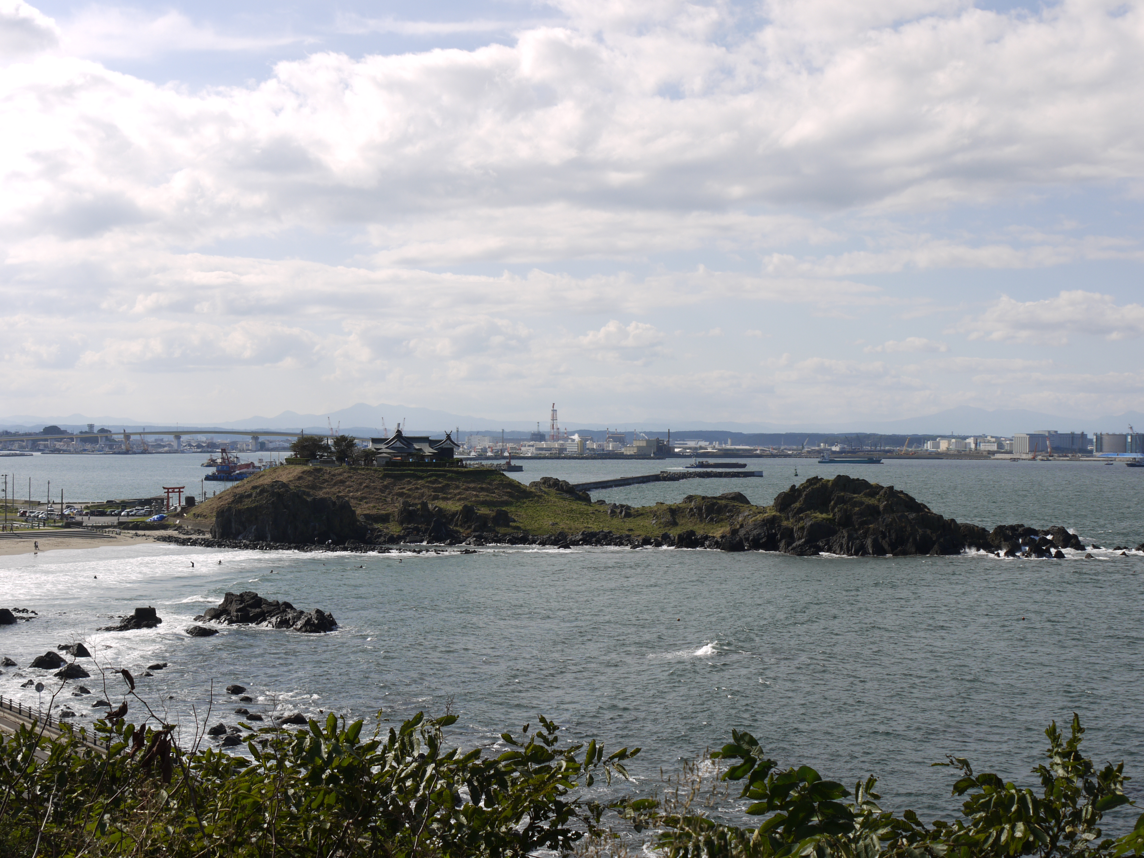 다네사시 해안의 북단에 해당하며, 섬 기슭의 도리이부터 정상의 신사 입구까지 참배길 계단이 이어져 있다. 신사 주변을 걸을 수 있도록 통로가 만들어져 있어 주변 경치를 즐길 수 있다.