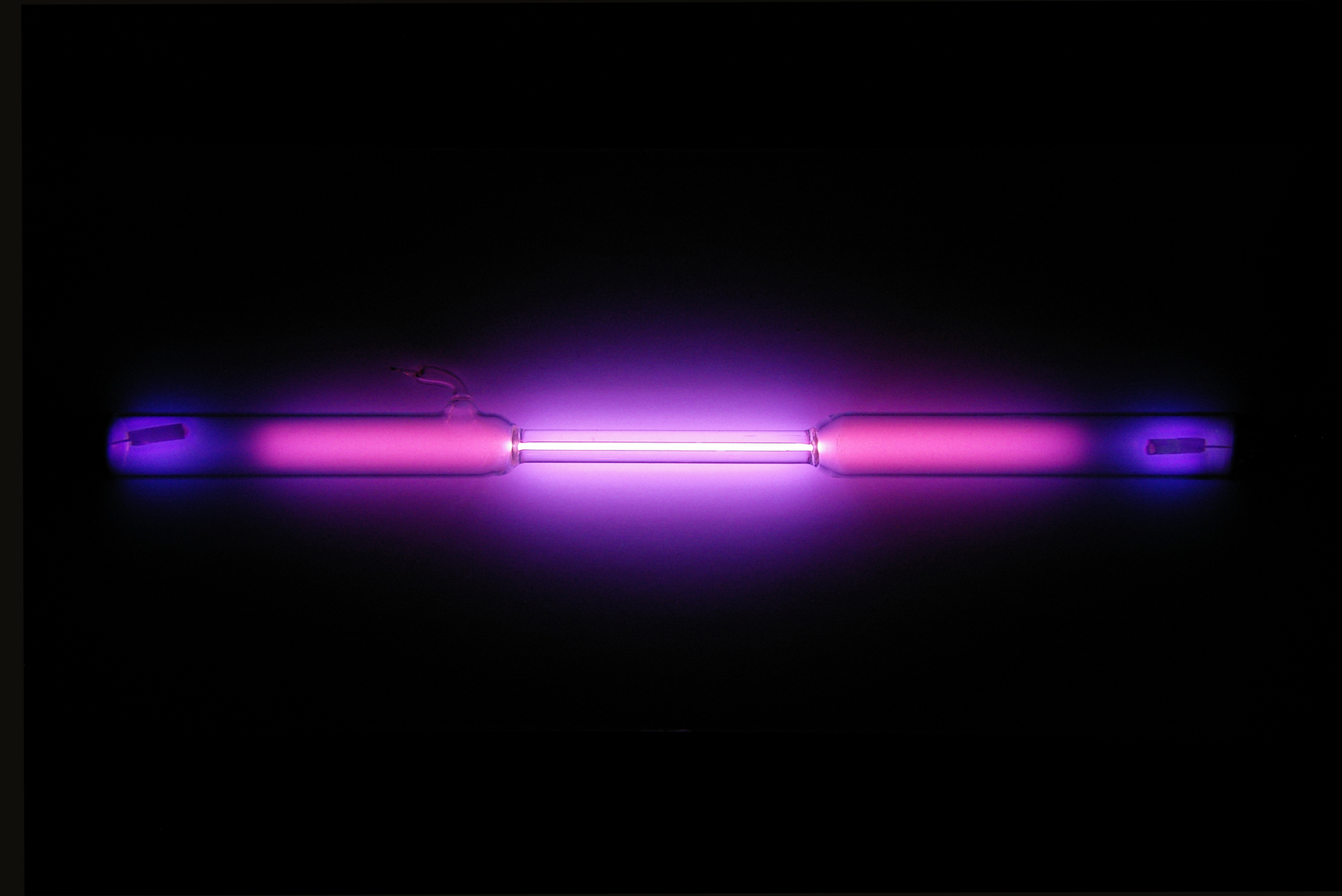 저압 가스 방전 튜브의 선구자는 독일의 유리 세공인 하인리히 가이슬러였다. 그는 1857년부터 다양한 가스가 들어 있어 여러 가지 색상으로 빛나는 다채로운 예술적 냉음극 튜브를 제작했는데, 이를 가이슬러 튜브라고 불렀다. 불활성 기체인 희가스 네온, 아르곤, 크립톤 또는 제논뿐만 아니라 이산화 탄소도 튜브에서 잘 작동한다는 것이 밝혀졌다. 이 기술은 프랑스 엔지니어 조르주 클로드에 의해 1910년에 상업화되었으며, 네온 사인에 사용되는 네온 조명이 되었다.2. 3. 금속 증기 램프와 무전극 램프