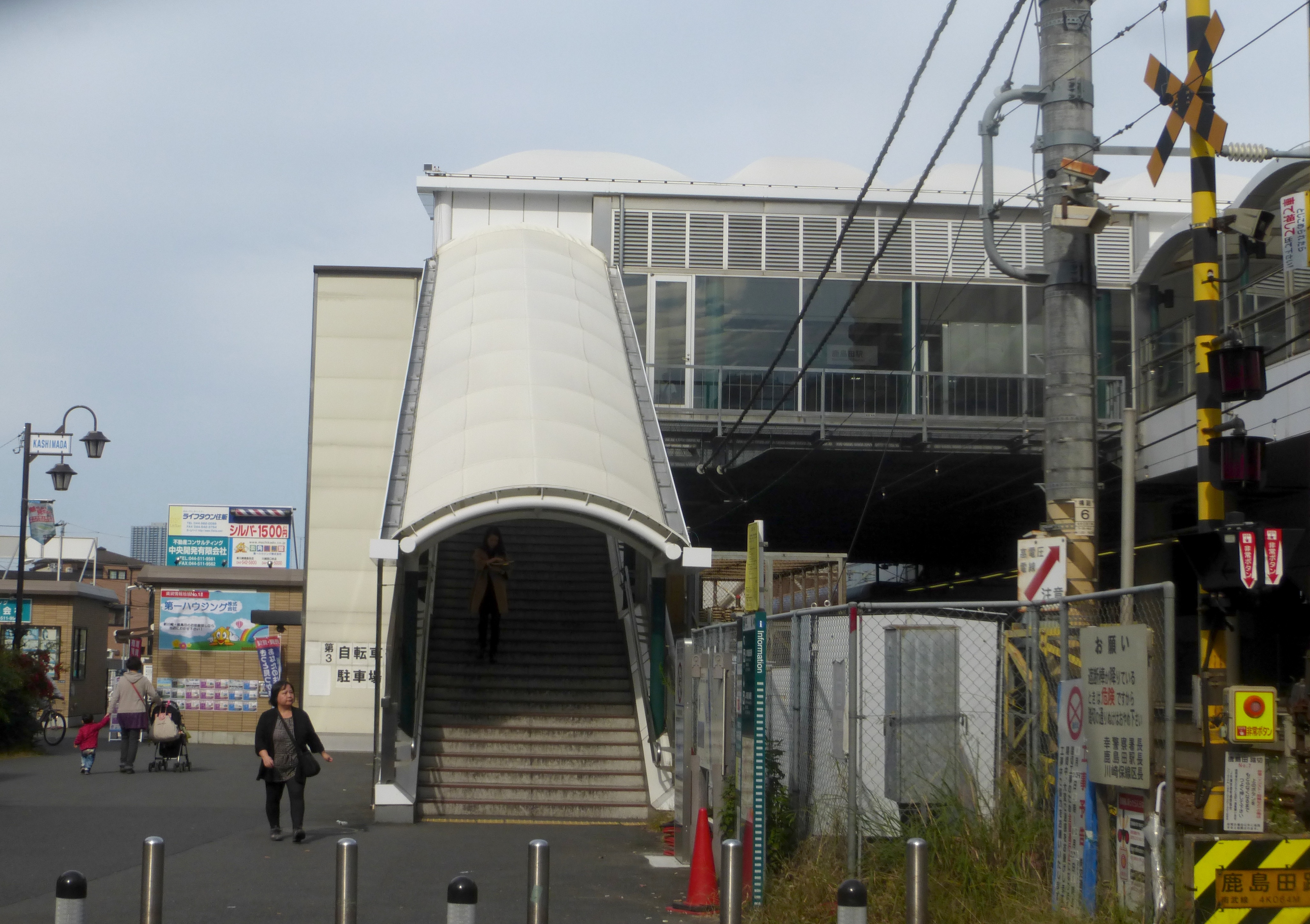 역사에서 역 앞 재개발 빌딩(사우전드 몰)까지 보행자 데크가 연결되어 있으며, 2016년에는 이 데크가 서쪽의 파크 타워 신카와사키와 신카와사키 스퀘어를 거쳐 신카와사키역 앞까지 연장되었다.