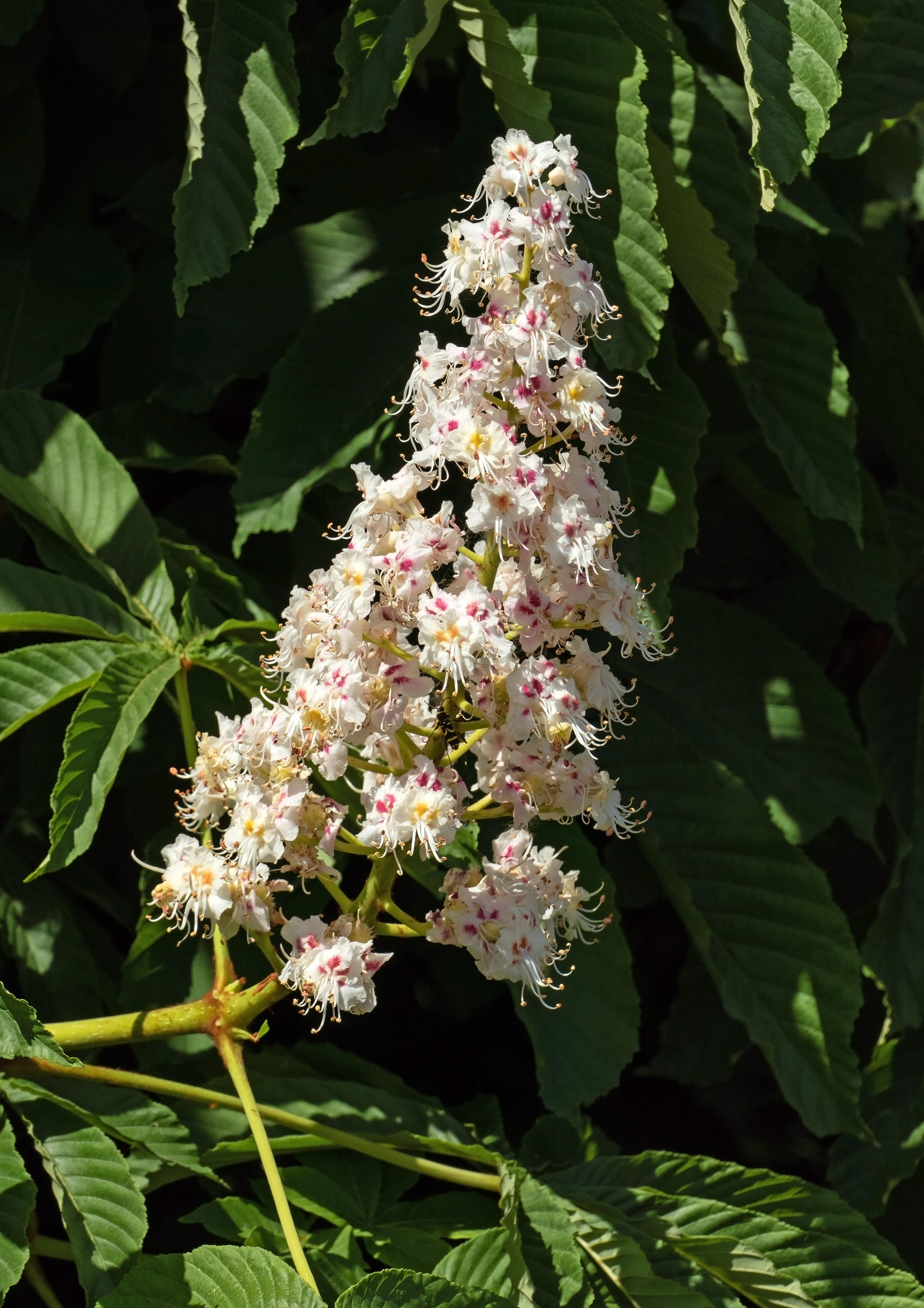 ''아에스쿨루스 히포카스타눔''(가시칠엽수)의 꽃은 보통 흰색이며 꽃잎 기부에 노란색에서 분홍색 반점이 있다.[4] 봄에 높이 10cm의 곧추선 원추꽃차례에 약 20~50개의 꽃이 핀다. 꽃가루는 꿀벌에게 독성이 없다.[5]