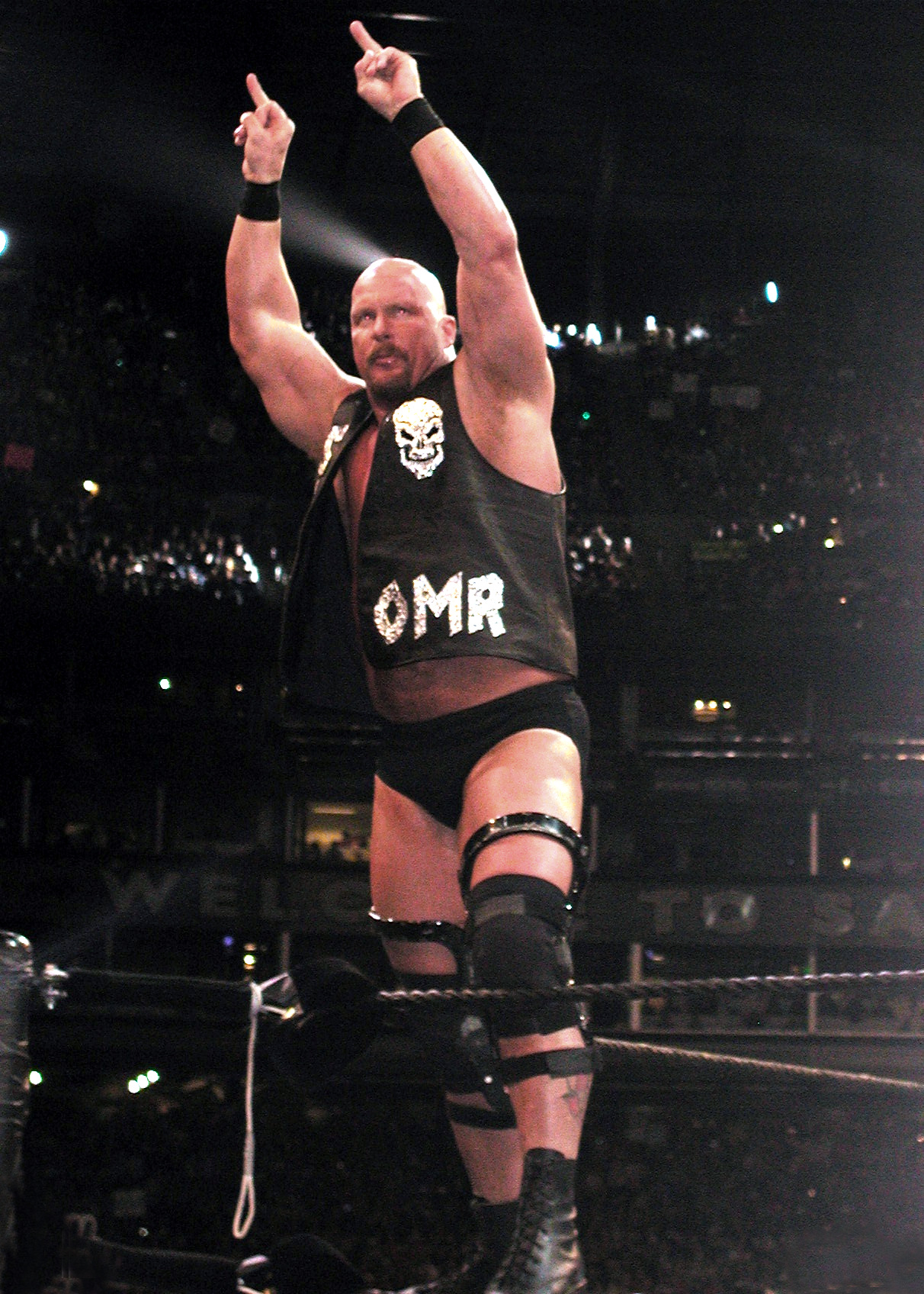 스티브 오스틴은 입장 시 양손으로 가운데 손가락을 세우는 퍼포먼스를 했다.