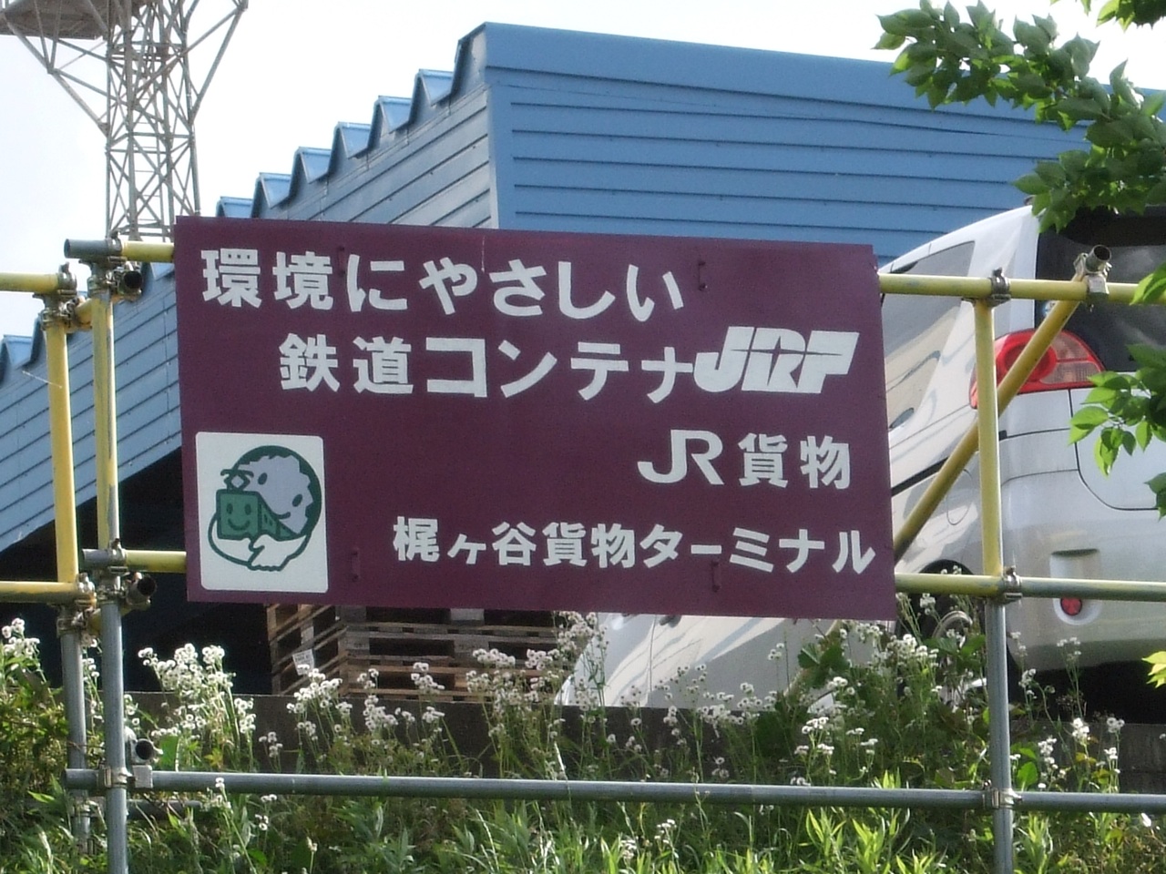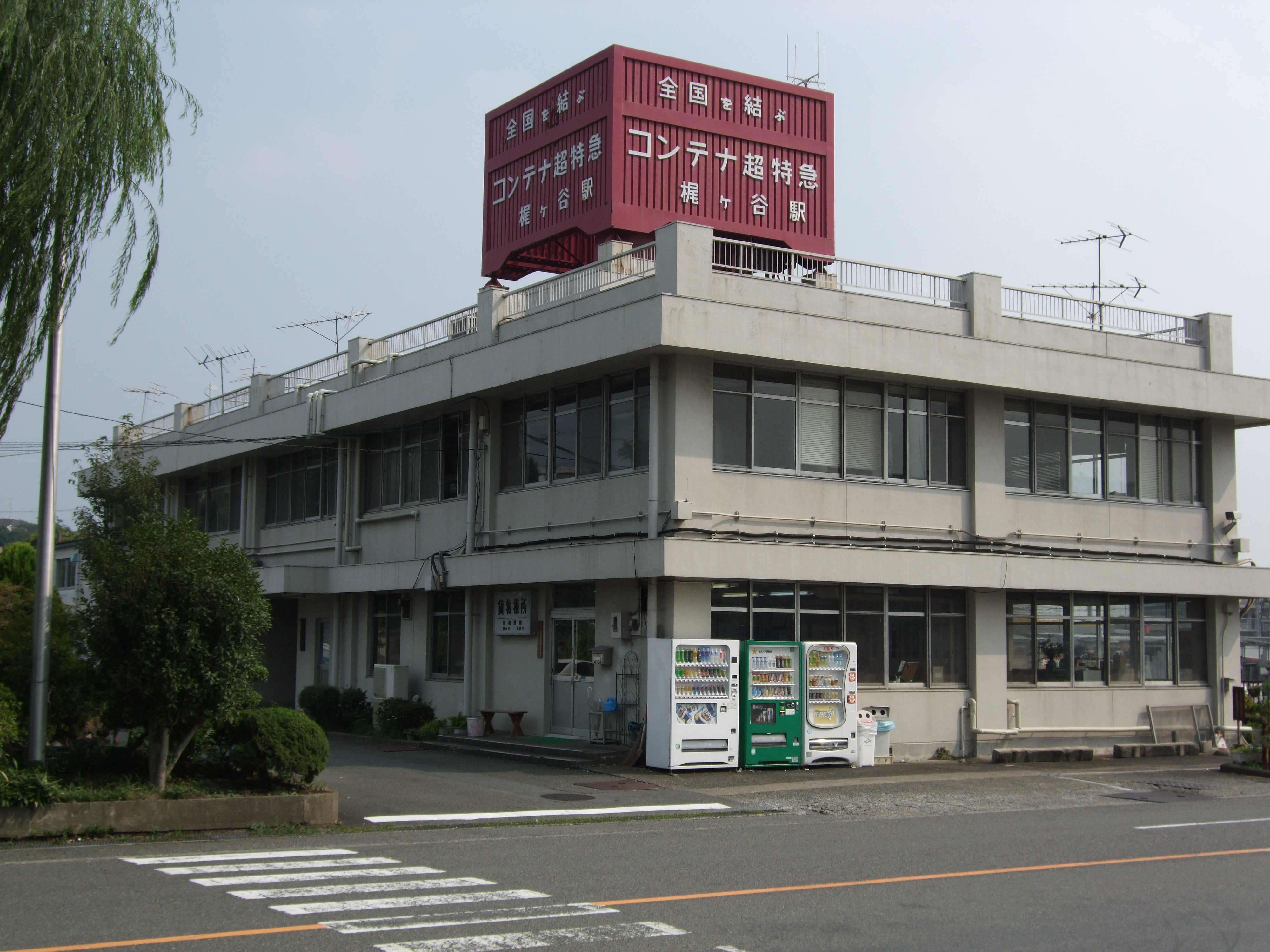 역사 위에는 국철·JR의 컨테이너를 본뜬 간판이 걸려 있다. 국철 시대에는 이 간판이 띠를 두른 C20형 컨테이너와 같은 디자인이었다.
