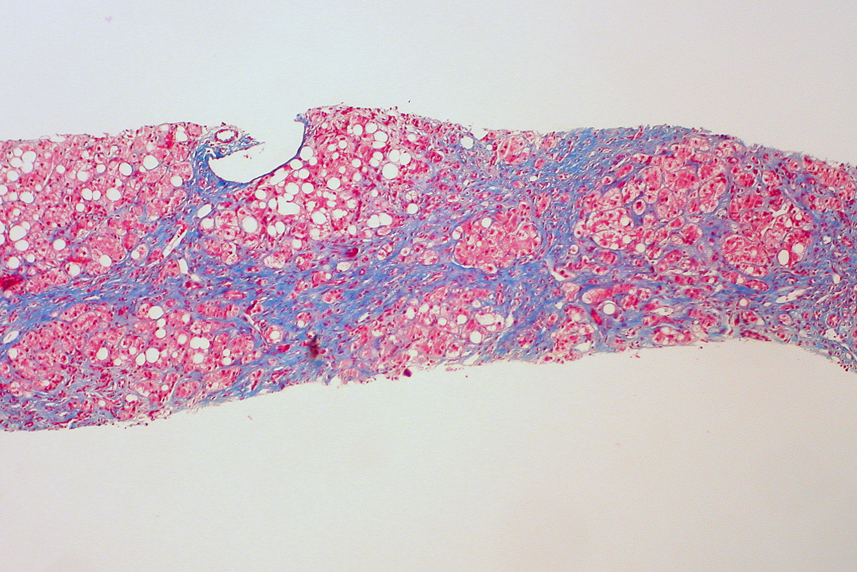 간의 섬유화는 서서히 진행되며, 초기에는 자각 증상이 거의 없어 진단이 매우 어렵다. 간 기능 부전이 일어나기 전까지는 증상이 없거나, 만성 간염과 비슷한 증상(온몸이 나른함, 식욕 부진, 헛배, 구역감, 설사 또는 변비)을 보인다.[182] 오줌이 진해지거나 황달이 생기기도 하며, 복수가 차서 배가 부풀어 오르는 경우도 있다.[182]