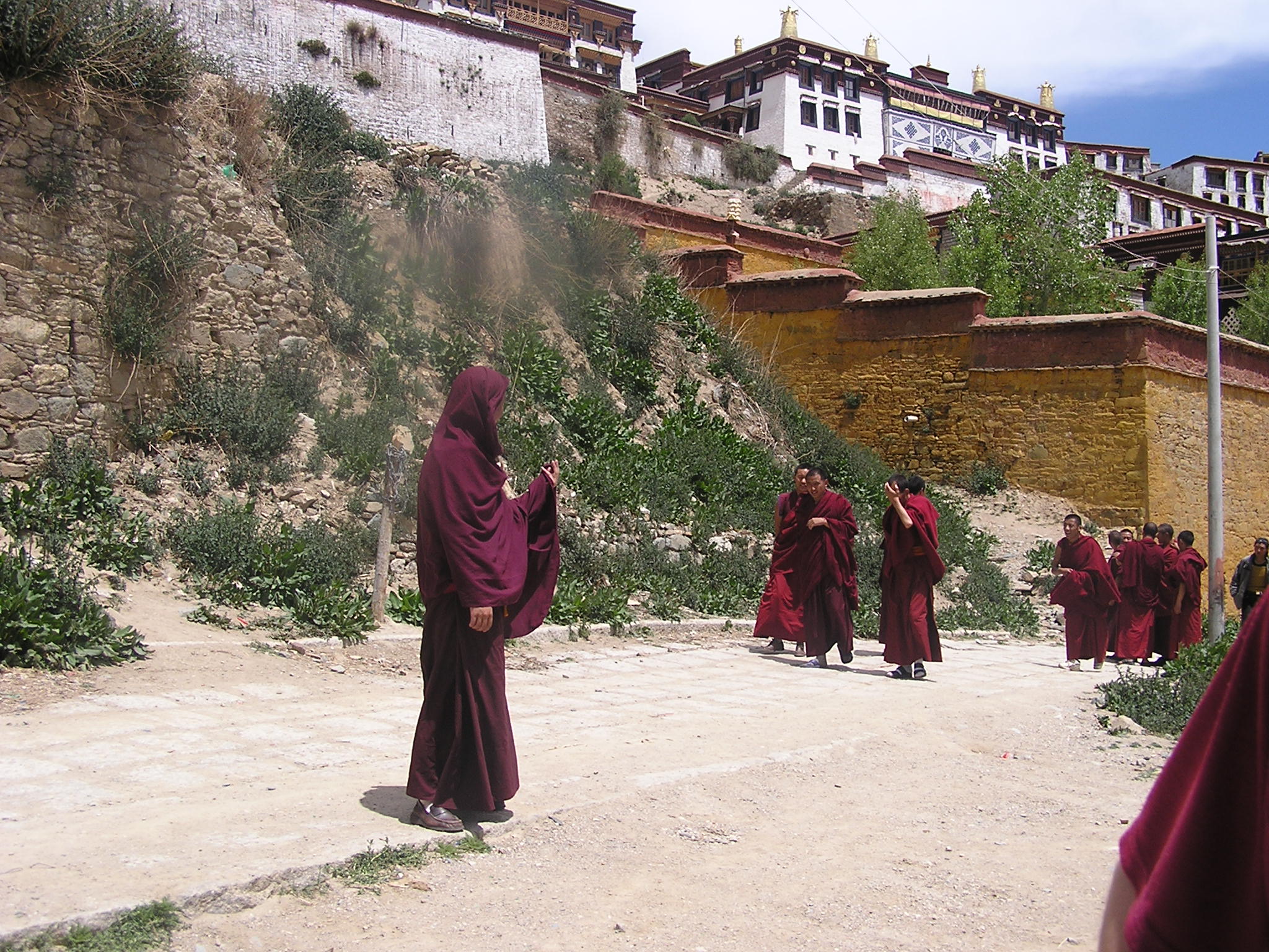 세라 사원은 1419년에 창건되어 겔룩파 불교의 중심지 역할을 하며, 승려들의 토론 전통이 특징인 티베트의 주요 사찰이다. - 라싸시의 건축물 - 당번회맹비