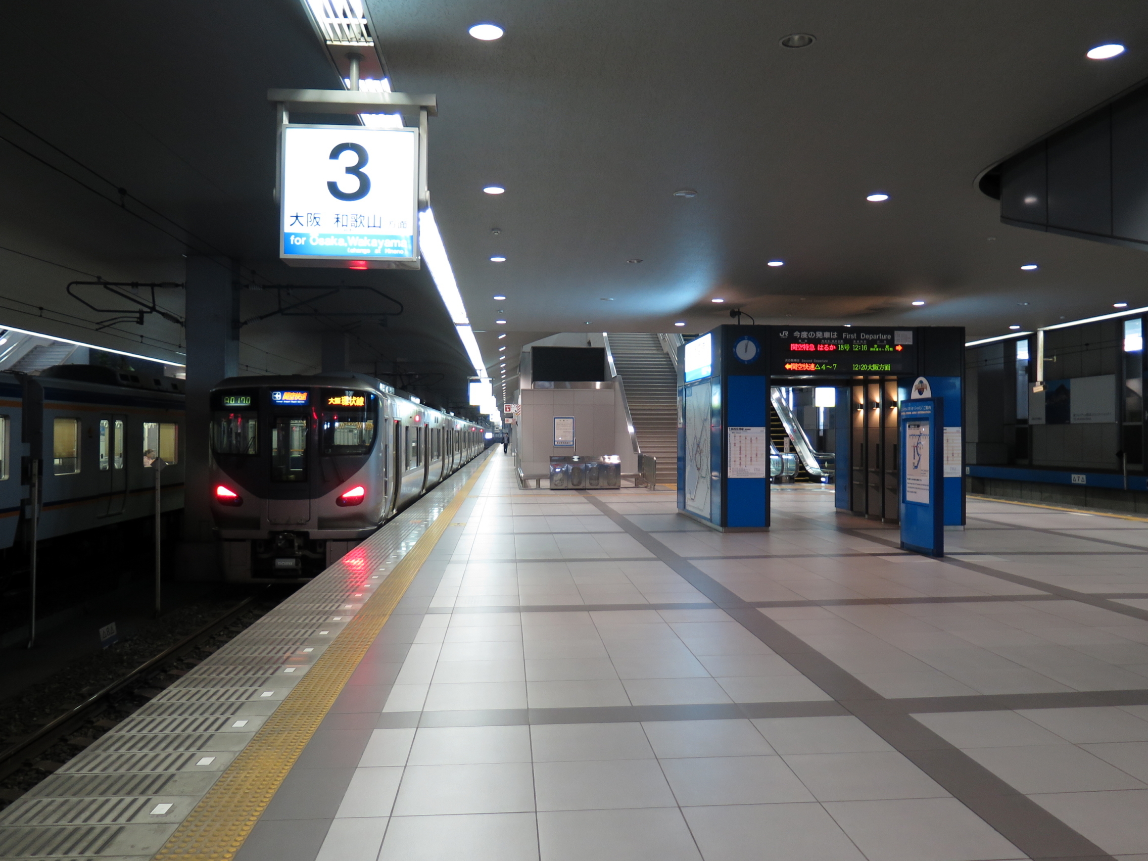 '''1 · 2'''번 승강장은 난카이 공항선 이즈미사노, 사카이, 난바, 와카야마 시 방면 열차가 사용한다.[25] 난카이 특급 ''라피:트'' 열차는 주로 2번 승강장에서 출발한다.'''3'''번 승강장은 간사이 공항선 간쿠ㆍ기슈지 쾌속 및 각역정차(첫차 및 막차) 열차가 사용하며, 히네노, 덴노지, 오사카, 교바시 방면으로 운행한다.[26]
