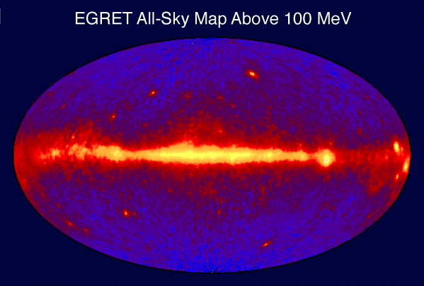 감마선 하늘(오른쪽 그림 참조)은 우리 은하 내에 있는 펄서에서 나오는 감마선 생성이 지배적이다. 나머지 하늘의 광원은 대부분 퀘이사이다. 펄서는 자기장을 가진 중성자별로, 퀘이사나 감마선 폭발보다 에너지가 낮고, 더 흔하며, 가까운 광원(우리 은하에서만 관측됨)이다. 펄서는 상대론적 속도의 하전 입자의 집중된 빔을 생성하는 자기장을 가지고 있으며, 이 입자가 근처 매질의 기체나 먼지와 충돌하여 감속될 때 감마선(제동복사)을 방출한다. 이는 메가볼트 방사선 치료 기기에서 고에너지 광자를 생성하는 메커니즘과 유사하다(제동복사 참조).[12] 역 컴프턴 산란도 감마선 생성의 또 다른 가능한 메커니즘이다. 상대론적 하전 입자 빔에 광자가 충돌하는 것도 감마선 생성의 또 다른 가능한 메커니즘이다. 매우 강한 자기장을 가진 중성자별(마그네타)은 천문학적 소규모 감마선 반복체를 생성하는 것으로 여겨지는 감마선의 또 다른 비교적 오래 지속되는 별 기반 광원이다.