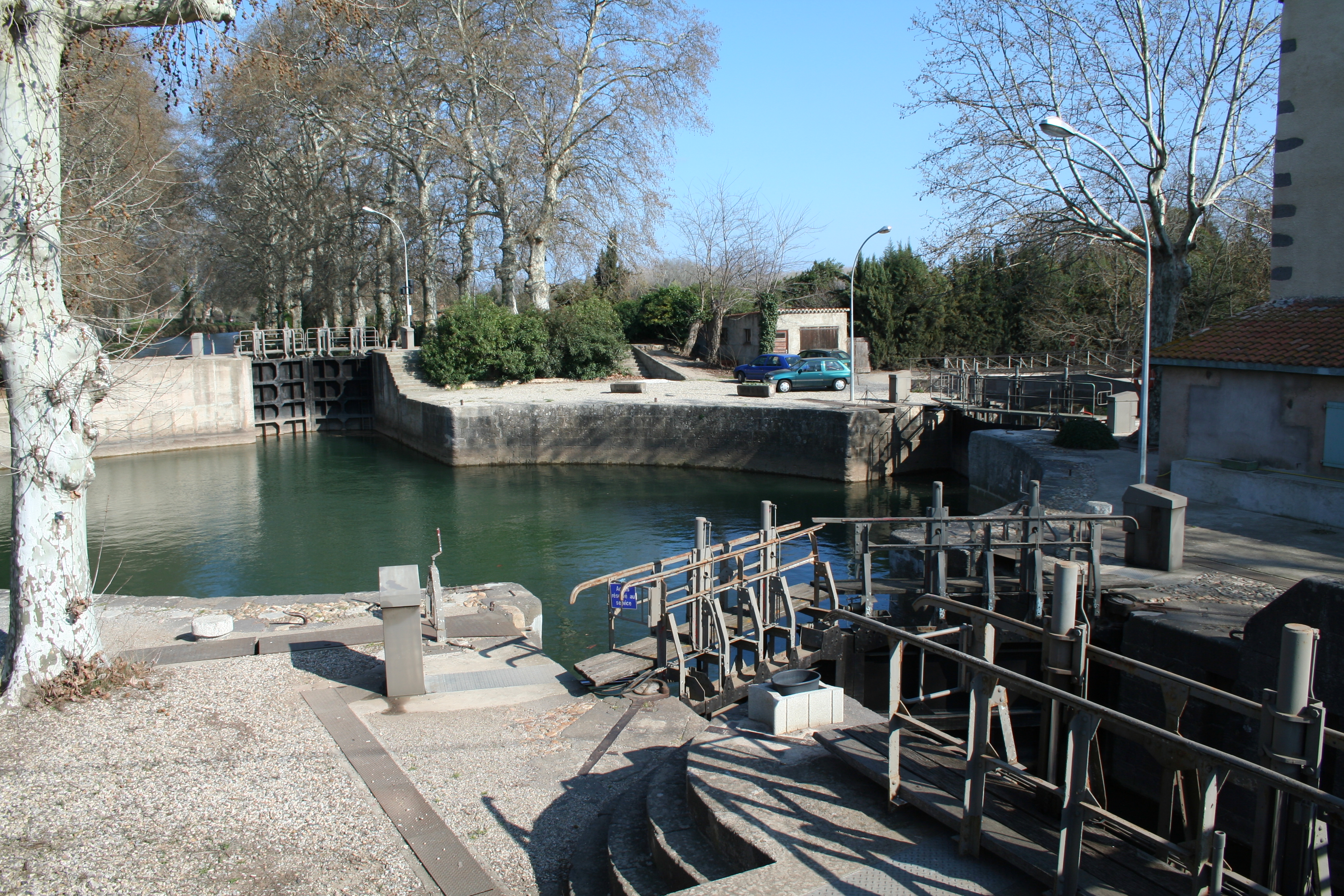 > 두 갑문 사이의 거리는 50보 이상이었고, 전체 공간은 헛간과 같은 커다란 지붕으로 덮여 있었다. 수문은 '매달린 수문'이었고, 수문을 닫으면 필요한 수위에 도달할 때까지 물이 조수처럼 쌓였다가 시간이 되면 밖으로 흘러나오게 했다.