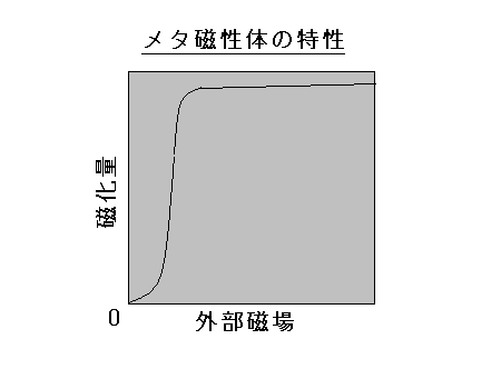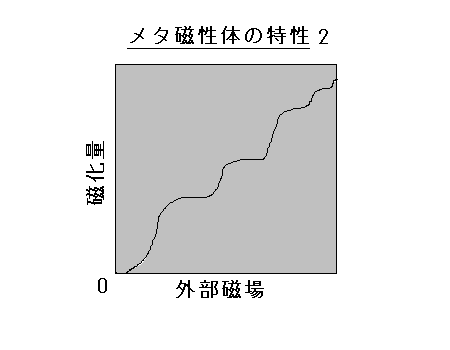 반강자성체의 일종으로, 자화 특성이 갑자기 진행되어 갑자기 포화되는 물질을 메타자성체라고 한다. CsFeCl3처럼 미세한 단계를 거치는 경우도 있다.