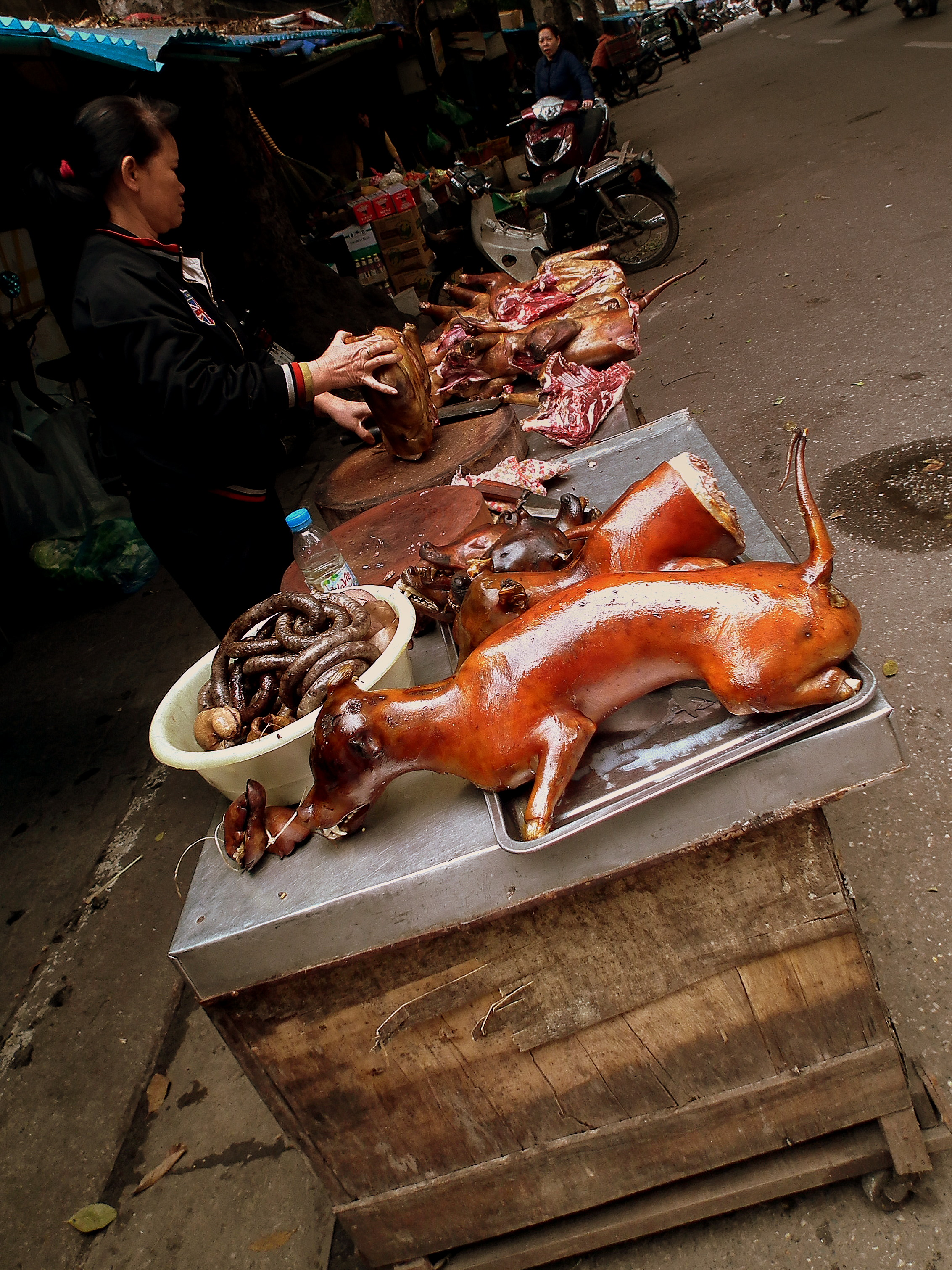 1979년 출판된 캘빈 슈웨이브(Calvin Schwabe)의 책 Unmentionable Cuisine에서는 종이처럼 얇게 썬 스위스식 개고기 요리인 gedörrtes Hundefleisch와 소금에 절이고 말린 생 개고기로 만든 훈제 개 햄인 Hundeschinken에 대해 설명하고 있다.