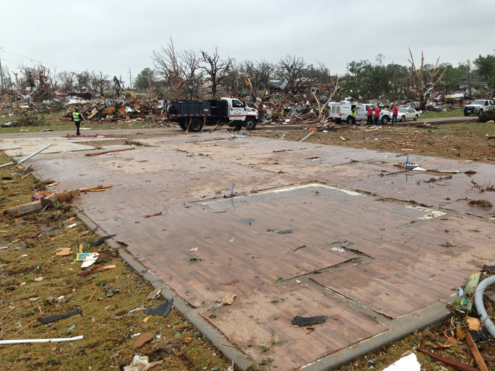 2013년 무어 토네이도는 2013년 5월 20일 미국 오클라호마주 무어 시를 강타하여 27km 경로를 따라 이동하며 25명이 사망하고 377명이 부상, 약 1,150채의 주택이 파괴되는 등 막대한 피해를 입혔다. - 토네이도 - 후지타 등급
