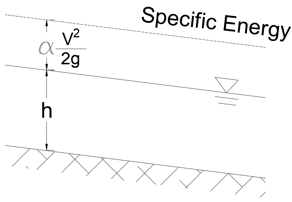 수심(水深, depth of flow)은 공기와 물이 접하는 자유수면에서 수로 바닥까지의 연직 거리이다. 중력 방향의 수심을 h, 자유수면에 수직인 수심을 d라고 하면 h cos θ = d이다. 만약 수로 경사 θ가 작다면 cos θ ≒ 1 이므로 중력 방향의 수심과 자유수면에 수직인 수심은 같다고 해도 무방하다(h ≒ d).