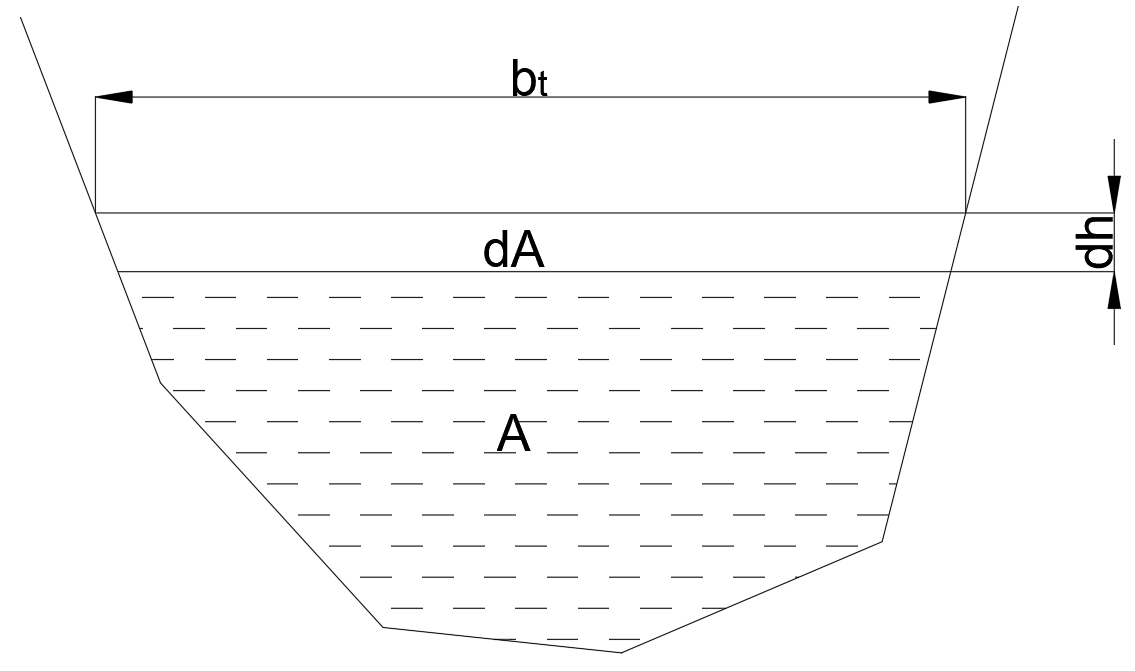 평균 유속 공식에 따라 단면 형상이 결정되면 임의의 수심에서 유적, 경심, 유속, 유량 등을 구할 수 있다.