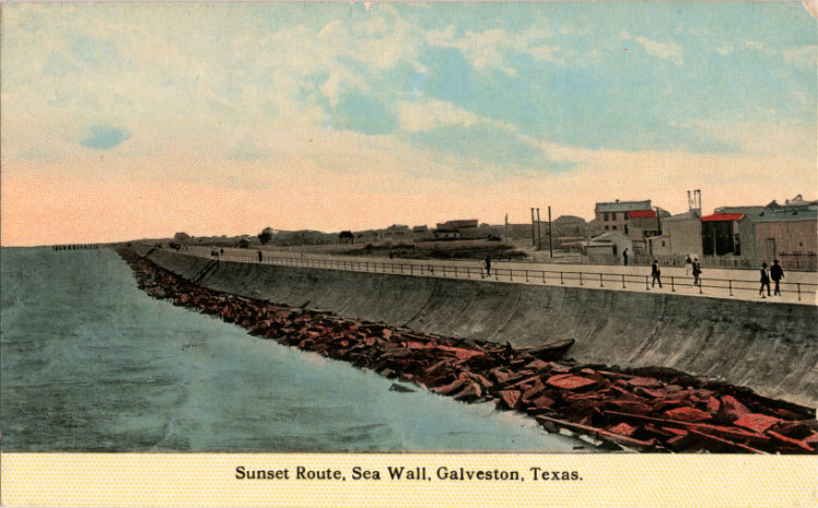 1900년 9월 8일, 갤버스턴은 허리케인으로 인해 미국 역사상 가장 치명적인 자연 재해를 겪었다.[34][35] 이로 인해 도시는 황폐화되었고, 약 6,000명에서 8,000명의 사망자가 발생했다.[34]허리케인 이후, 도시를 보호하기 위해 10마일(16km) 길이의 17피트(5.2m) 높이의 방파제가 건설되었다.[34] 헨리 마틴 로버트를 포함한 엔지니어 팀은 도시의 상당 부분을 방파제 뒤로 들어 올리는 계획을 설계하여 도시의 신뢰도를 유지하려 했다. 복구를 가속화하기 위해 "갤버스턴 계획"이라고 알려진 시 위원회 형태의 시 정부가 도입되었다.[36]