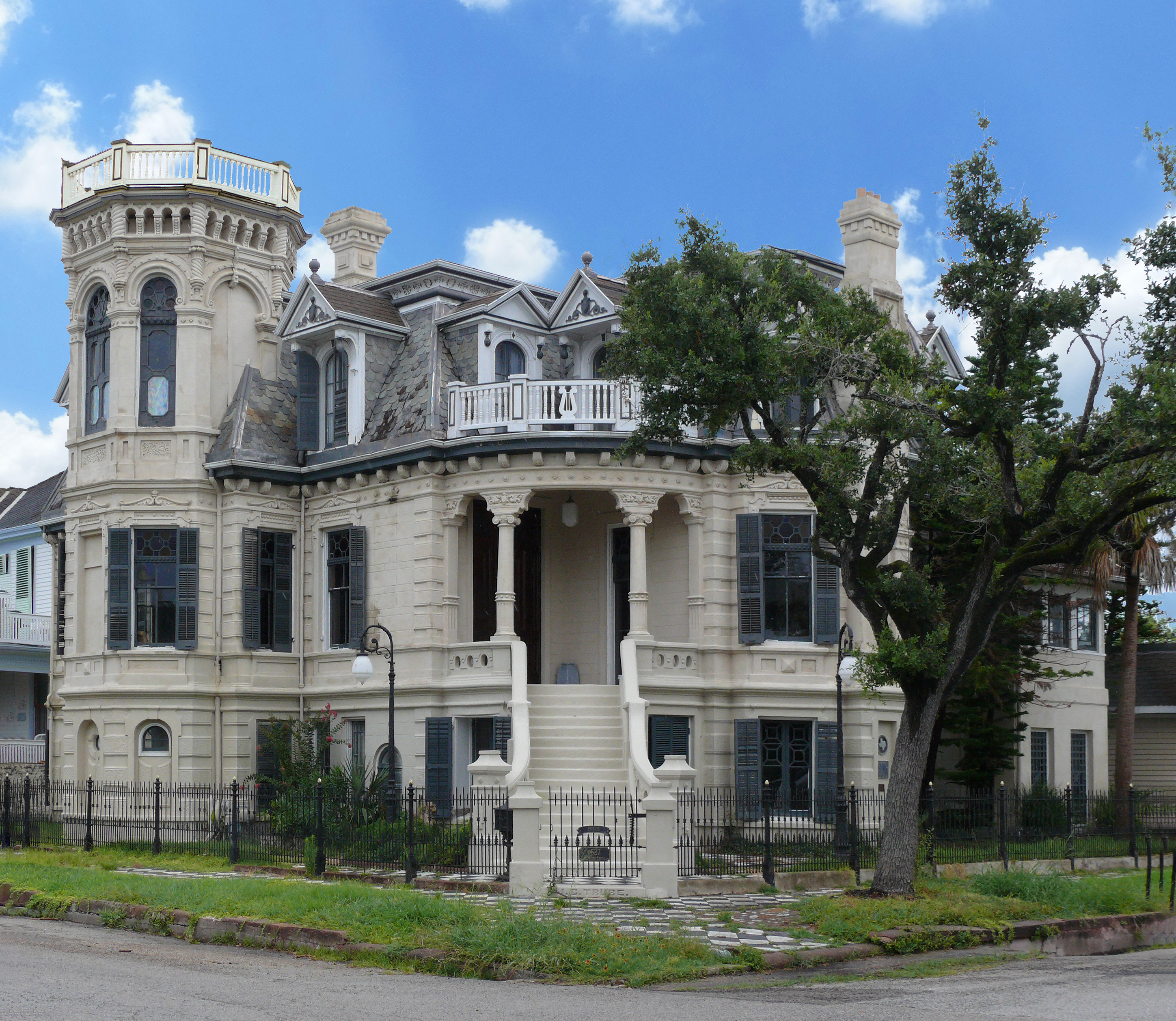 1859년 제임스 모로 브라운이 지은 애쉬턴 빌라(Ashton Villa)는 붉은 벽돌로 지어진 빅토리아 건축(Victorian architecture)의 이탈리아 양식 건축(Italianate architecture) 저택이다.[81][82] 텍사스에서 최초의 벽돌 구조물 중 하나이며, 국립 역사 유적지에 등재되어 있으며, 텍사스 역사 랜드마크로 기록되어 있다.[83] 이 건물은 또한 1865년 6월 19일 연합군(Union (American Civil War))의 고든 그레인저 장군이 발코니에서 "일반 명령 제3호"의 내용을 읽어 텍사스 주의 모든 노예를 해방시킨 준틴스(Juneteenth)로 알려진 휴일이 시작된 곳이기도 하다.