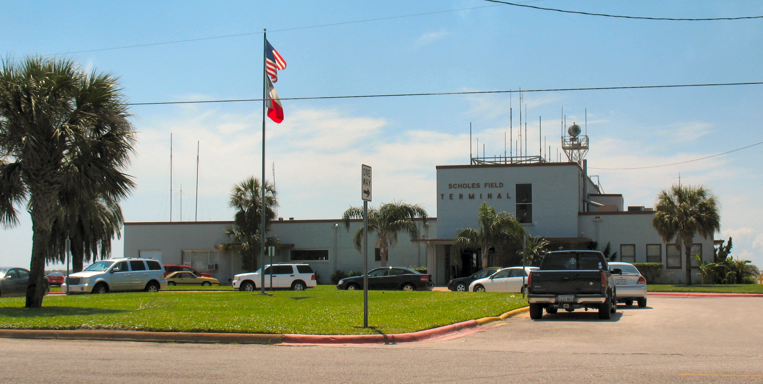 1930년대와 1940년대에 제2차 세계 대전 중 스콜스 국제공항의 전신인 갤버스턴 시립 공항은 "갤버스턴 육군 비행장"으로 재지정되어 육군 항공대 기지로 사용되었다. 1943년 1월, 갤버스턴 육군 비행장은 제46 폭격 부대가 멕시코만에서 대잠수함 역할을 수행하면서 공식 가동되었다. 1942년 윌리엄 루이스 무디 2세 부부는 무디 재단을 설립하여 갤버스턴의 시민 및 건강 관련 프로그램을 지원했다.[49]