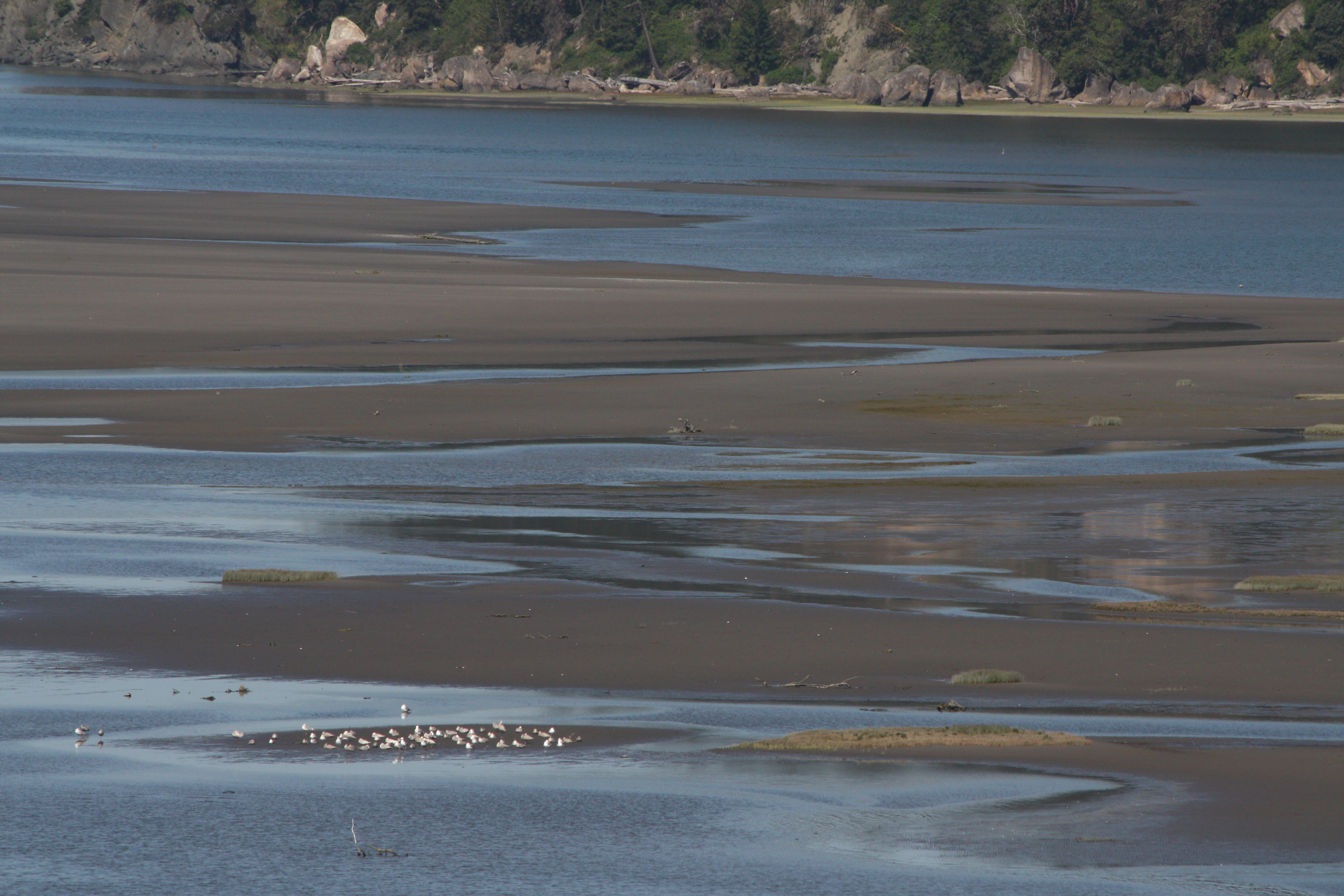 갯벌은 수많은 철새와 텃새에게 중요한 서식지 또는 중간 기착지 역할을 한다. 특히, 북반구 번식지와 남반구 비번식 지역을 이동하는 철새들에게 갯벌은 필수적인 쉼터가 된다.[8]하구나 석호(潟湖)에 발달하는 갯벌은 담수와 해수가 섞이는 기수역이 되는 경우가 많다. 이곳에는 옆새우와 같이 기수역에 특화된 생물들이 서식하며, 치어와 어린 물고기들의 서식지로도 중요하다. 이러한 생물들을 먹이로 하는 흰뺨검둥오리, 제비갈매기, 도요·도요류 등 다양한 조류가 갯벌을 찾는다.