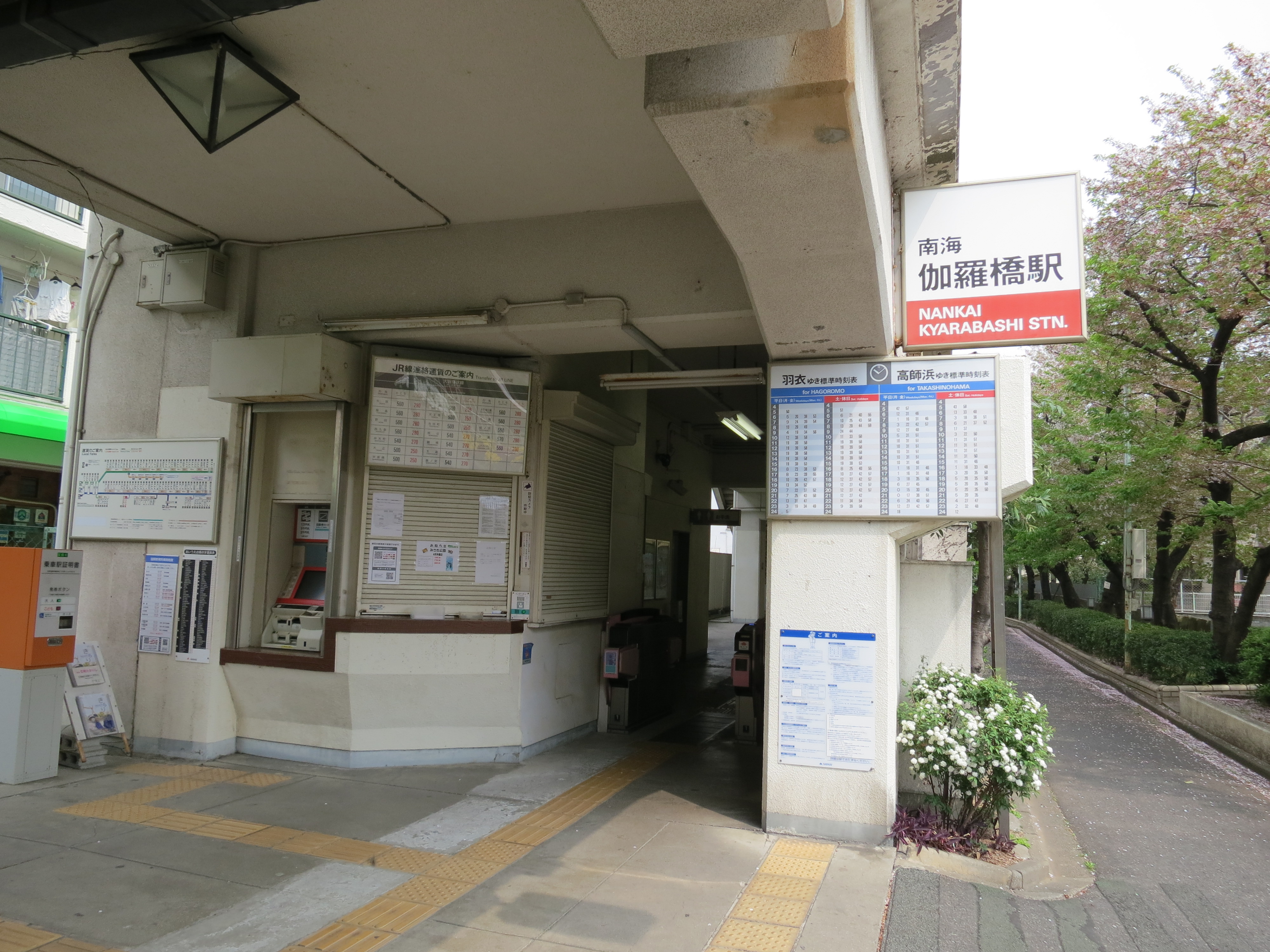 역 앞에 위치했던 갸라바시 공원은 철쭉, 사츠키, 멀구슬나무의 큰 나무가 상징이었으며, 오사카 녹색 100선에도 선정되었다.[36] 하지만 다카시노하마선 고가화 공사로 인해 2020년 4월 13일부터 사업 종료 시점까지 폐쇄되었고, 공원 내 나무들은 벌채되었다.
