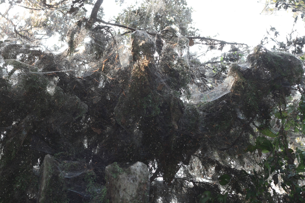 Trees Cocooned in Webs After Flood