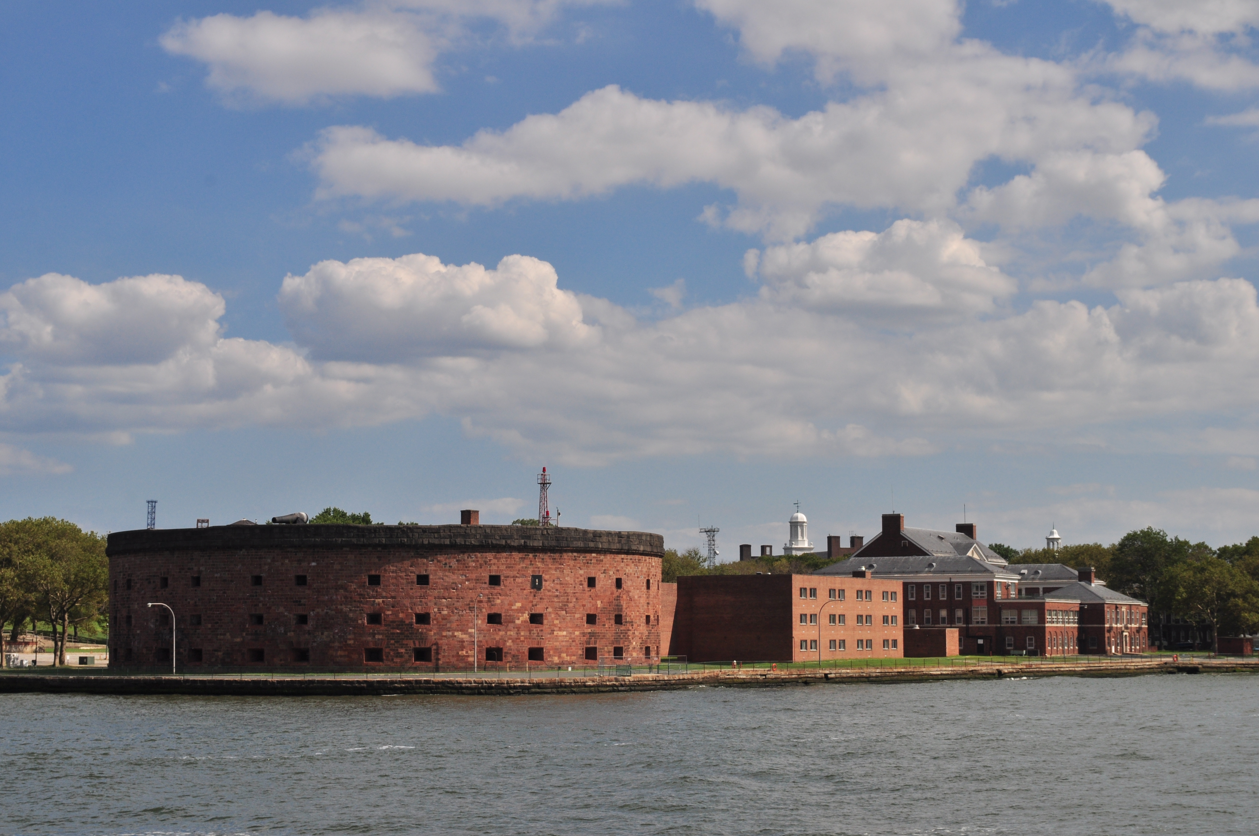 그 후 몇 달 동안 이 섬의 방어력은 계속 개선되었고,[452][456][457] 같은 해 7월 12일에는 허드슨 강을 태펀 지까지 올라온 HMS 피닉스와 HMS 로즈와 교전했다.[452][453][457] 영국군은 태펀 지까지 북상했지만, 식민지 측의 대포는 영국군 사령관에게 이스트 강 진입을 주저하게 할 만큼 충분한 피해를 입혔다.[458] 이 요새는 롱아일랜드 전투에서 영국 육군이 같은 해 8월 27일경 브루클린 하이츠 점령을 시도한 후 워싱턴의 브루클린에서 맨해튼으로의 철수를 성공시키는 데 기여했다.[456][457][458][459]