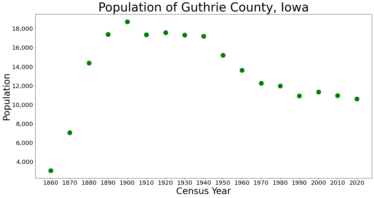 다음은 거스리군의 인구 변화 추이를 나타낸 표이다.[7][8][9][10][11][20][24][25][26][27][28]