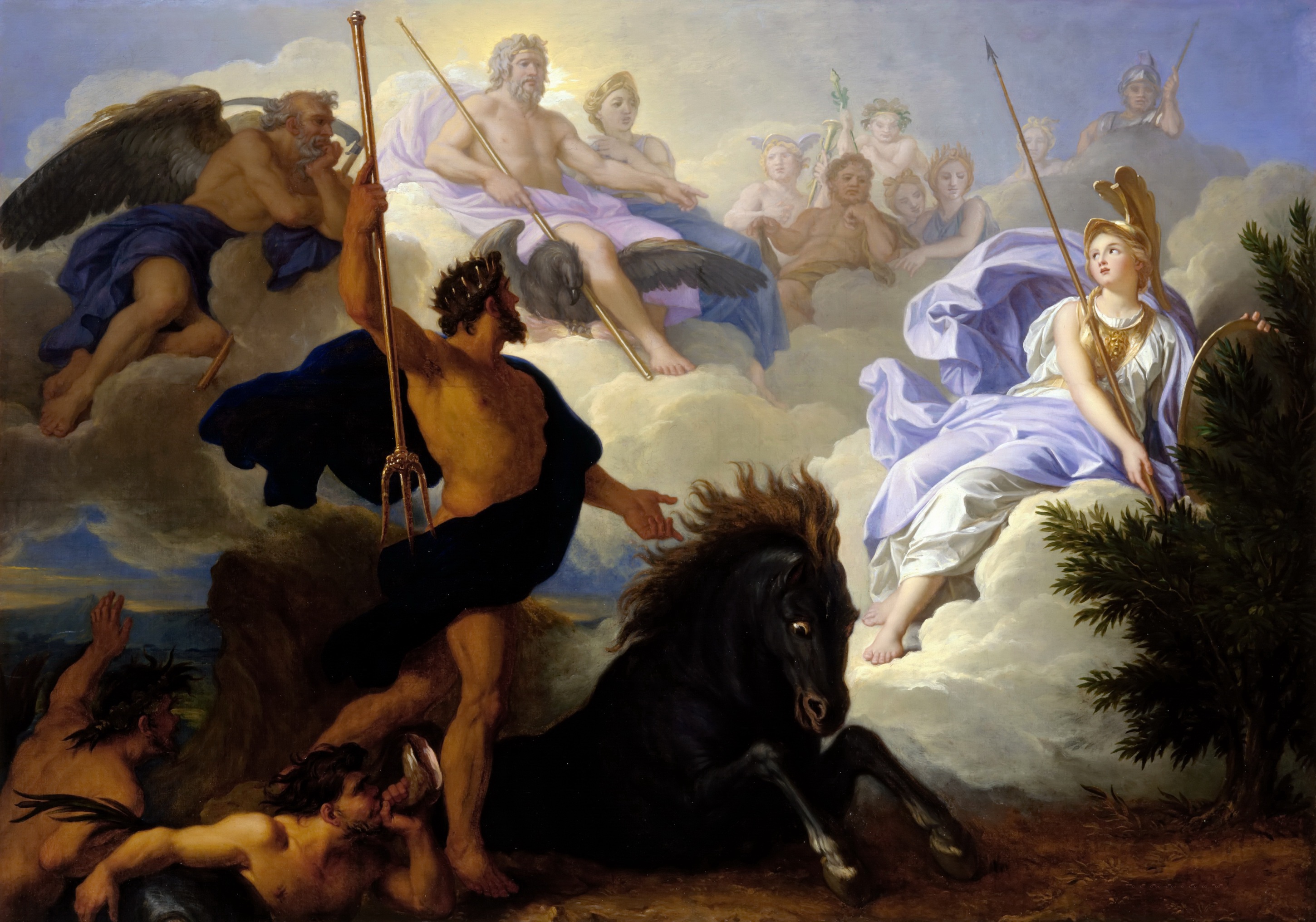 로마 건국 신화는 로물루스와 레무스 형제의 이야기를 중심으로 전개된다.[16] 늑대의 젖을 먹고 자란 이들은 로마를 건국하고, 로물루스는 로마의 초대 왕이 된다. 베르길리우스는 자신의 ''아이네이스''에서 아이네아스의 오디세이와 그의 라비니움 파괴, 율루스의 알바 롱가 통치와 쌍둥이 출생, 왕족으로부터의 후손 등을 통해 이미 확립된 사건에 완벽하게 들어맞는 건국 신화를 묘사했다.5. 7. 그리스의 건국 신화