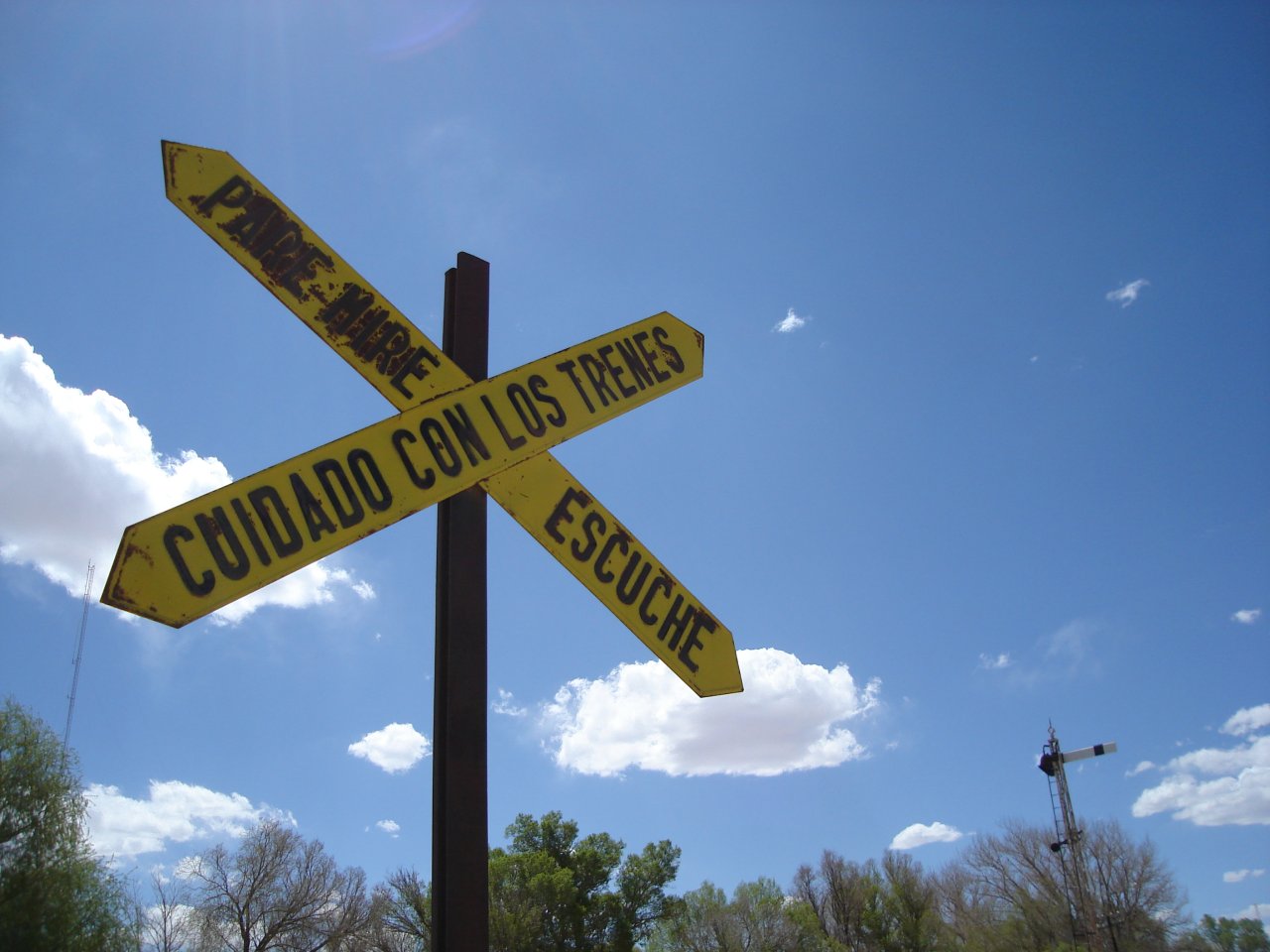 미국의 도로 표지판에서는, 건널목이 있음을 알리는 것에 한정하여 원형의 것을 사용하고 있다("차량 진입 금지"도 표지판의 일러스트 디자인 자체는 일본의 것과 유사한 원형이지만, 미국에서는 네모난 간판에 원형 일러스트 디자인을 그린 것이 되어 있다).