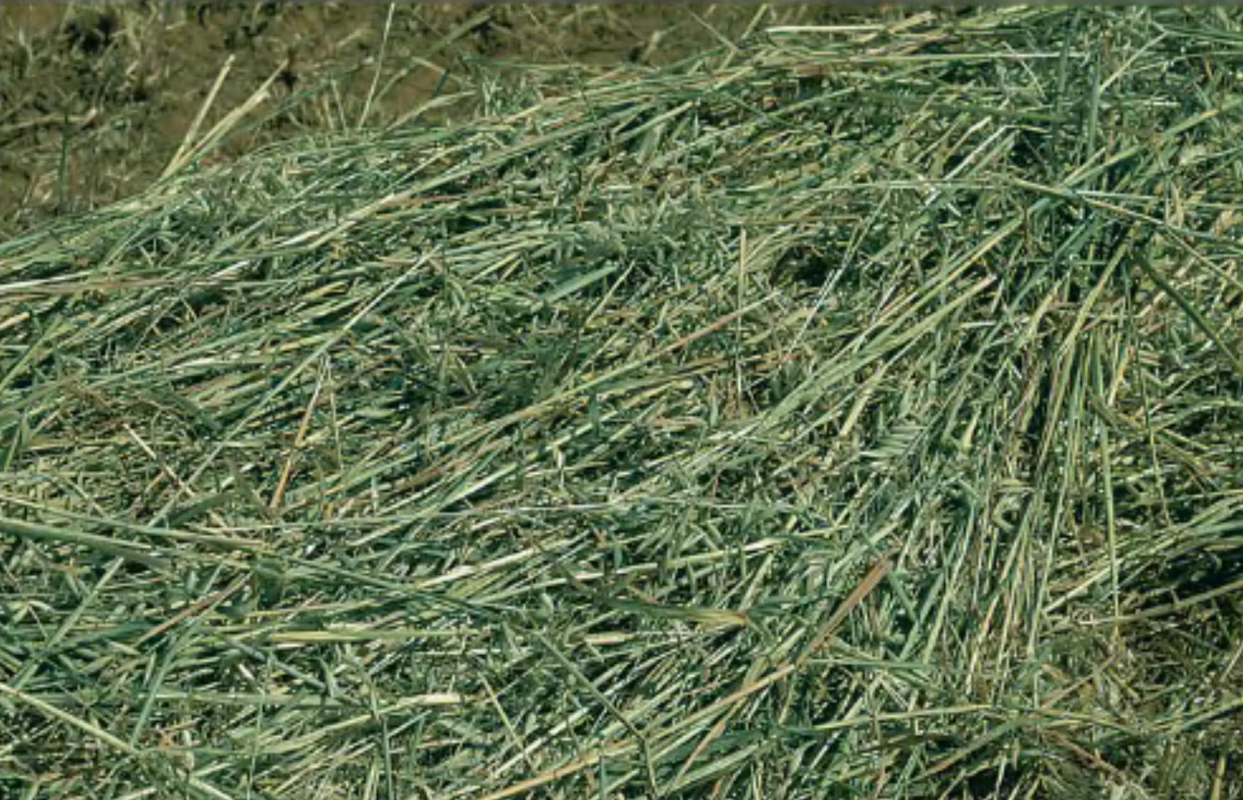 건초에는 알팔파(자운영) 및 클로버(붉은색, 흰색, 토종)와 같은 콩과 식물도 포함될 수 있다.[4] 건초 속의 콩과 식물은 이상적으로 꽃이 피기 전에 잘라낸다.