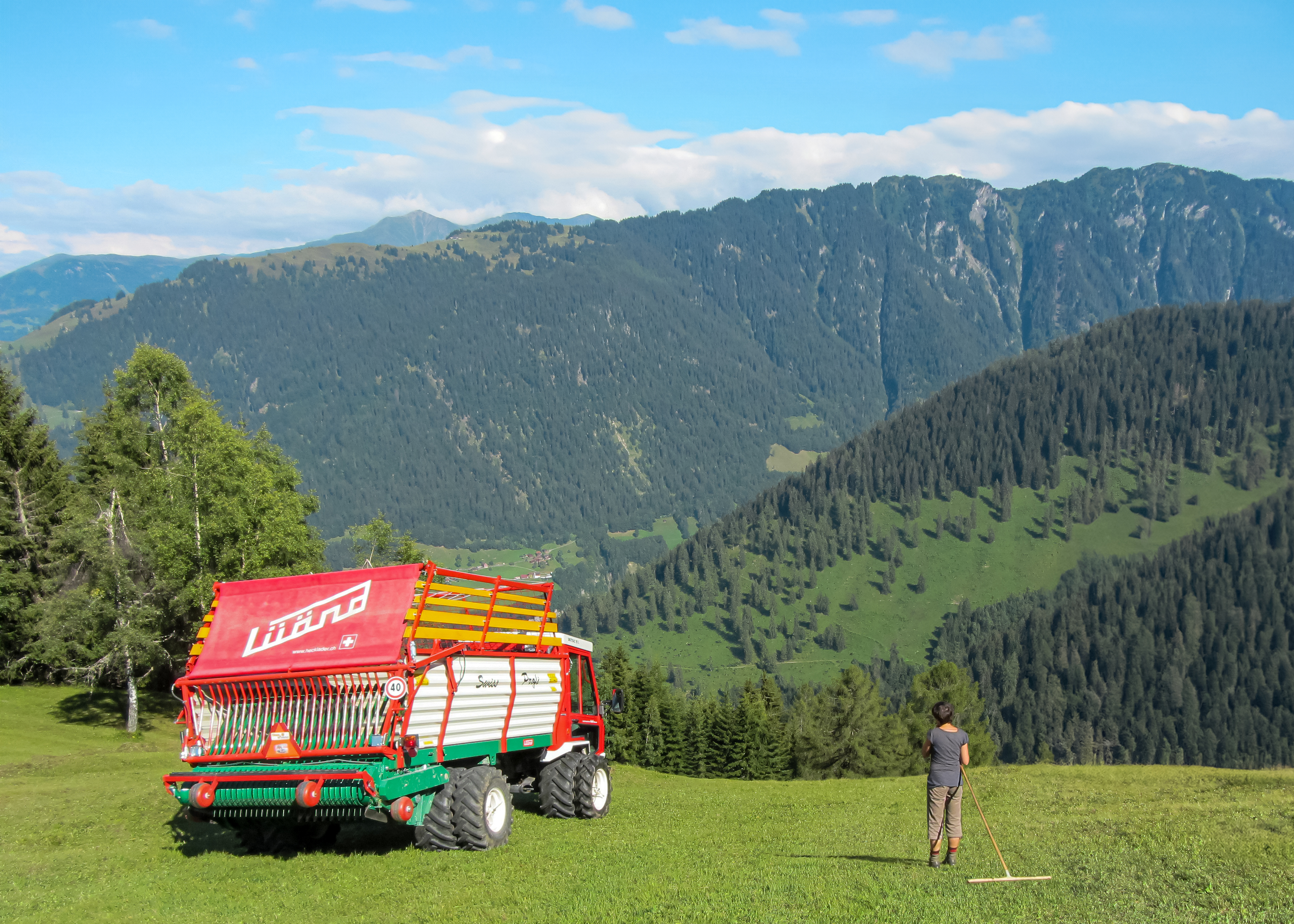 - 뒤집기·집초: 수확된 풀은 위쪽은 잘 마르지만, 아래쪽은 잘 마르지 않아 뒤집어 통기를 좋게 한다.[59] 집초는 포장을 위한 준비 작업이다.[59] 뒤집기 기계는 테더, 집초 기계는 레이크, 동시 작업 기계는 테더 레이크이다.[59][60]