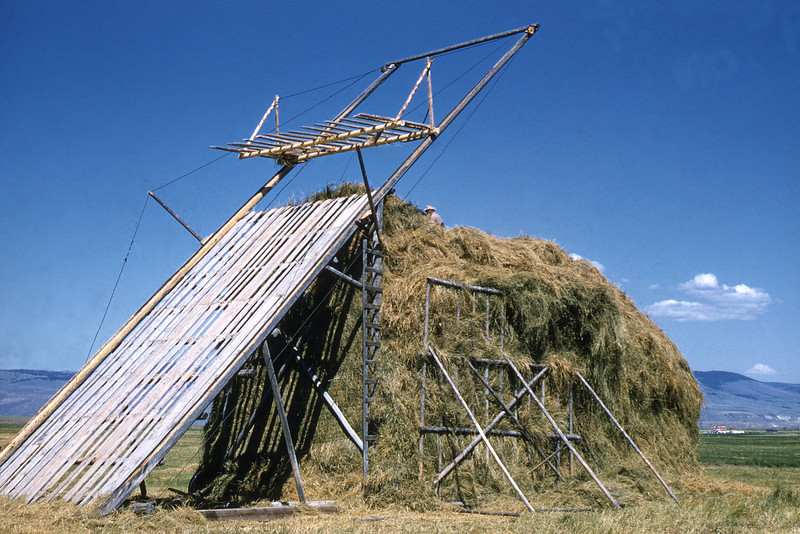 일부 농장에서는 느슨한 건초를 막사, 헛간 등에 보관했다. 건초는 건초 보관소에 보관하기도 했다. "건초 더미"라는 용어는 건초를 자르는 기계, 건초 더미, 건초 수집 마차를 의미하기도 했다.