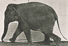코끼리는 앞뒤로 움직일 수 있지만, 속보, 점프, 또는 달릴 수 없다. 코끼리는 육상에서 이동할 때 걷기와 달리기와 유사한 더 빠른 걸음걸이, 이렇게 두 가지 걸음걸이만 사용한다.[59] 걷기에서 다리는 진자처럼 작용하며, 발이 땅에 닿는 동안 엉덩이와 어깨가 오르내린다. "공중 단계"가 없으므로 빠른 걸음걸이는 달리기의 모든 기준을 충족하지 못하지만, 코끼리는 엉덩이와 어깨가 내려갔다가 발이 땅에 닿는 동안 올라오는 등 다른 달리는 동물과 매우 유사하게 다리를 사용한다.[60] 빠르게 움직이는 코끼리는 앞다리로 '달리고', 뒷다리로 '걷는' 것처럼 보이며 최고 속도 18km/h에 도달할 수 있다.[61]