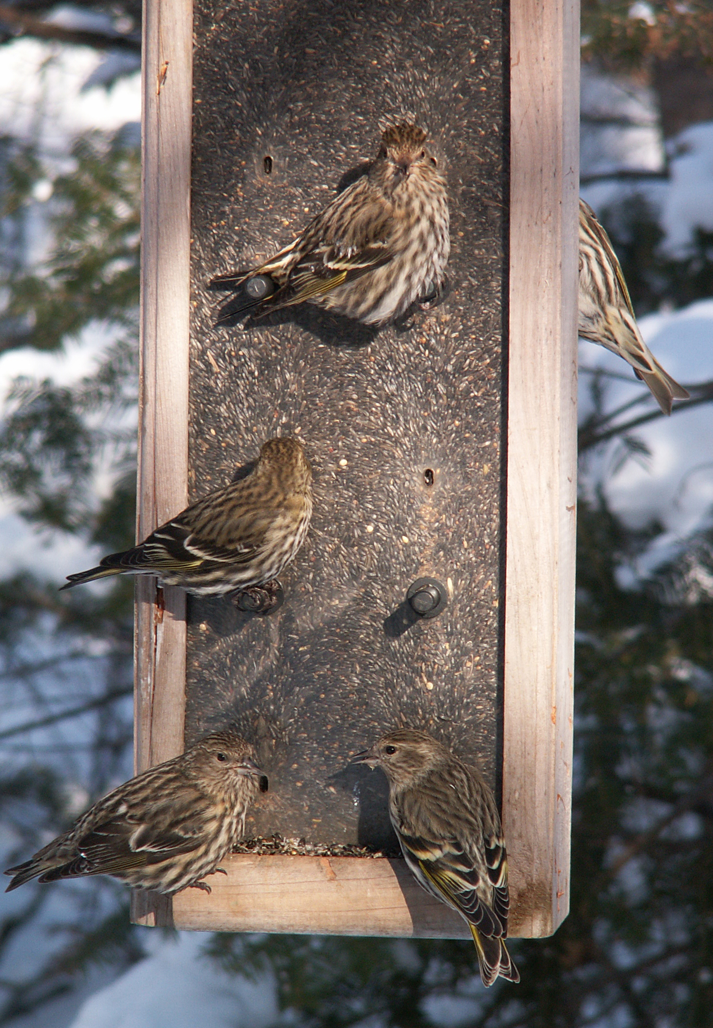 솔방울 씨앗이 풍부한 개방된 숲 캐노피에서 먹이를 찾는 것을 선호하지만, 활엽수림, 덤불, 초원, 초지, 잡초가 우거진 밭, 길가, 채퍼럴, 뒷마당 정원 및 잔디밭과 같은 다양한 서식지에서도 먹이를 찾는다. 작은 씨앗을 주는 뒷마당 먹이통으로 모여들기도 한다. 미네랄 퇴적물이 있는 곳, 예를 들어 겨울철 눈과 얼음을 녹이기 위해 소금을 뿌린 도로 등으로 유인될 수도 있다. 둥지는 주로 침엽수의 수평 가지에 잘 숨겨 짓는다.[7]