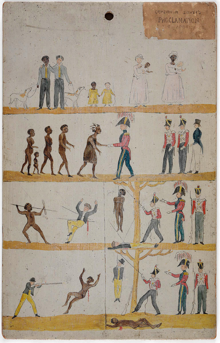 토머스 데이비 총독의 시대인 1830년경 반디멘스 랜드에 그려진 "데이비 총독의 포고령"이라는 포고판.