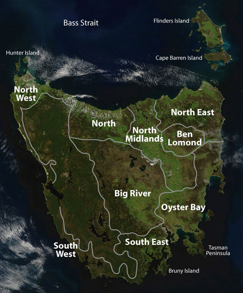 유럽인과 처음 접촉했을 당시의 타스마니아 부족 지도