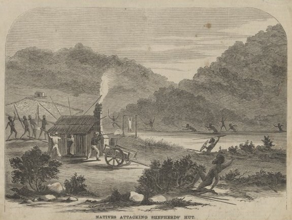 |thumb|right|새뮤얼 토머스 길의 원주민 캠프에 대한 야간 징벌 습격 묘사]]