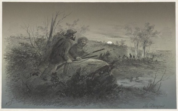 타스마니아 원주민이 양치기 오두막을 습격하는 모습. 새뮤얼 캘버트 작