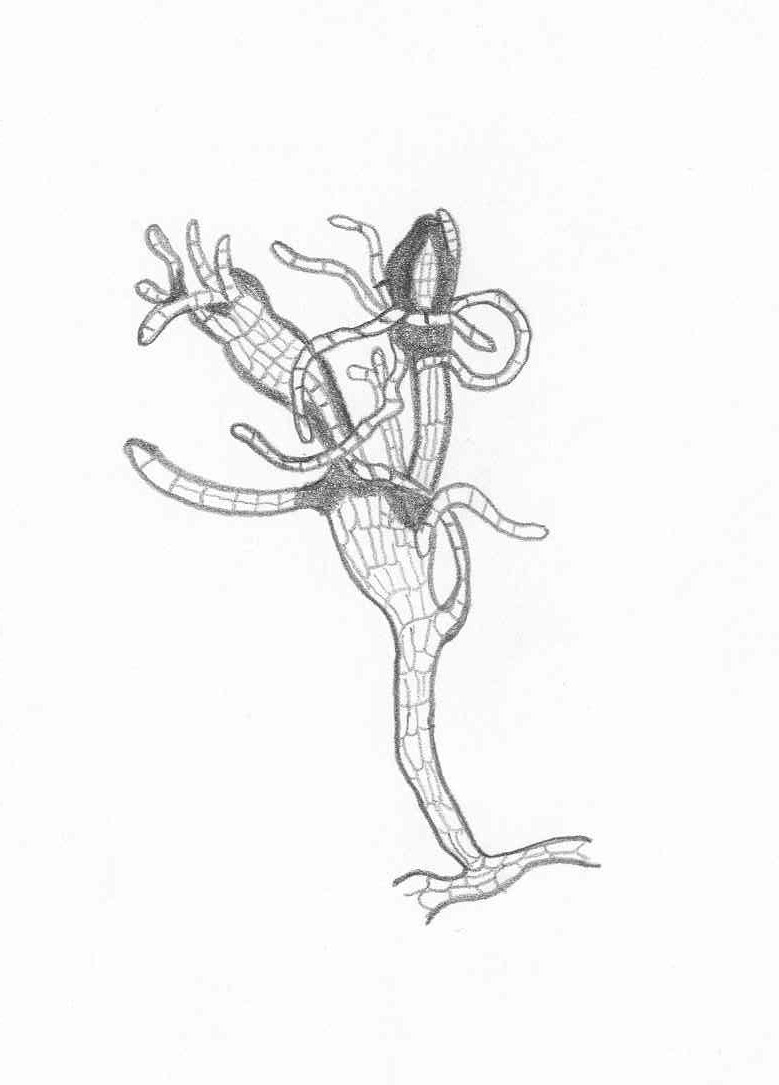 영양체인 배우체의 형태는 일반적인 선류인 꼬마이끼아강의 것과 특히 검정이끼과의 것과 비슷하다.[3]。줄기에는 편평한 잎이 늘어서 있고 잎에는 중륵을 가진 것도 있다. 전체적으로 검은 빛을 띤 색을 하고 있다.