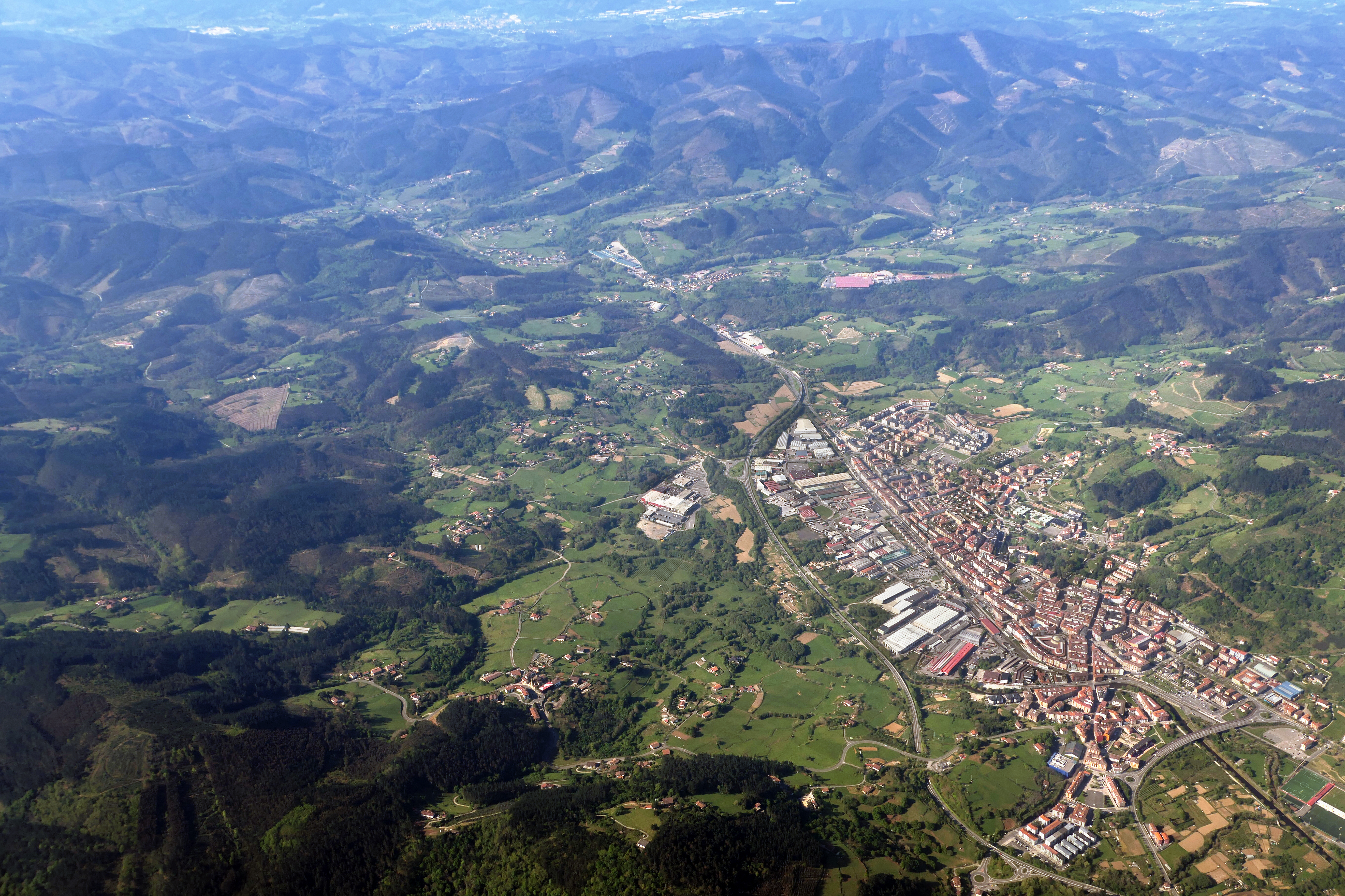 오카 강(Oca River, Biscay)이 형성하는 계곡에 위치하며, 오카 강 하류부(Urdaibai estuary)의 중심지이다. 헤라사기의 번식지인 우르다이바이 하구의 생물 보호구역은 람사르 조약에 등록되어 있다.[15] 비스케이 만 연안의 베르메오에서 내륙의 두란고에 이르는 남북 도로, 네르비온 강 하류부의 빌바오에서 레케이티오에 이르는 동서 도로의 교차점에 있다.