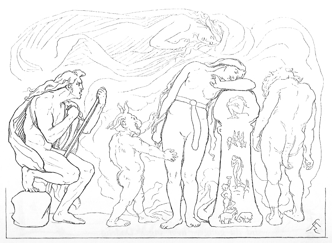 《길피의 속임수》 37장에 따르면, 높으신 분은 프레이르가 흐리드스셸프에 들어가 모든 세상을 바라보다가 북쪽에서 아름다운 여인을 보았다고 전한다. 그 여인이 팔을 들어올려 문을 열자 "그녀의 팔에서 빛이 하늘과 바다로 쏟아져 모든 세상이 그녀로 인해 밝아졌다"라고 한다.[15]