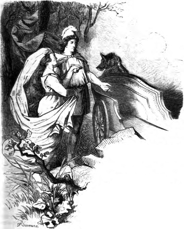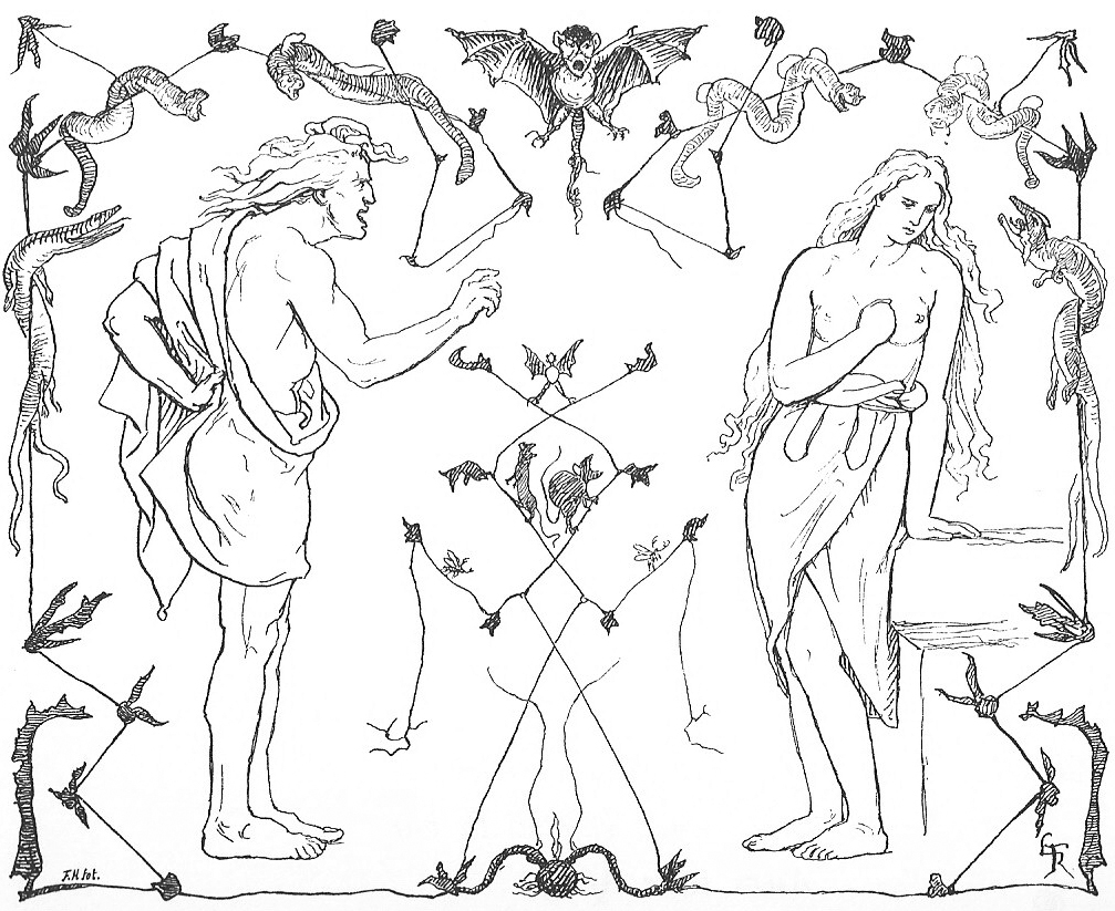《시적 에다》의 시 〈스키르니르의 말〉에서 신 프레이는 높은 자리 흐리드스칼프에 앉아 모든 세상을 바라보았다. 프레이는 아버지의 궁전에서 창고로 걸어가는 아름다운 소녀를 보았고, 그녀에게 마음을 빼앗겼다. 프레이의 시종인 스키르니르는 프레이의 아버지 뇨르드와 여신 스카디의 요청으로 프레이의 고민을 알아내기 위해 대화를 나눈다. 프레이는 스키르니르에게 기미르의 집에서 빛나는 팔을 가진 놀라운 소녀를 보았지만, 신들과 알파르들은 둘이 함께하는 것을 바라지 않는다고 말한다. 이 내용을 벤자민 소프와 헨리 아담스 벨로우는 다음과 같이 번역했다.