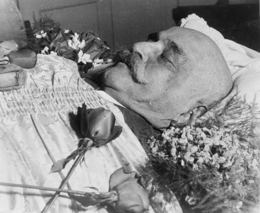 > 강철 같은 끈기로 그는 자신의 방에 들어가 앉아 말했다. "이제 모든 장기가 파괴되었다. 새로 만들어야 한다." 그러고 나서 그는 베넷을 돌아보며 미소를 지었다. "오늘 밤 저녁 식사에 오세요. 몸을 움직여야 합니다." 그가 말하는 동안 큰 고통의 경련이 그의 몸을 흔들었고, 피가 귀에서 쏟아졌다. 베넷은 생각했다. "그는 뇌출혈이 있다. 그는 몸을 계속 움직이도록 강요하면 스스로 죽을 것이다." 그러나 그는 곰곰이 생각했다. "그는 이 모든 것을 해야 한다. 몸이 움직이는 것을 멈추게 하면 죽을 것이다. 그는 자신의 몸을 통제할 수 있다."[37]