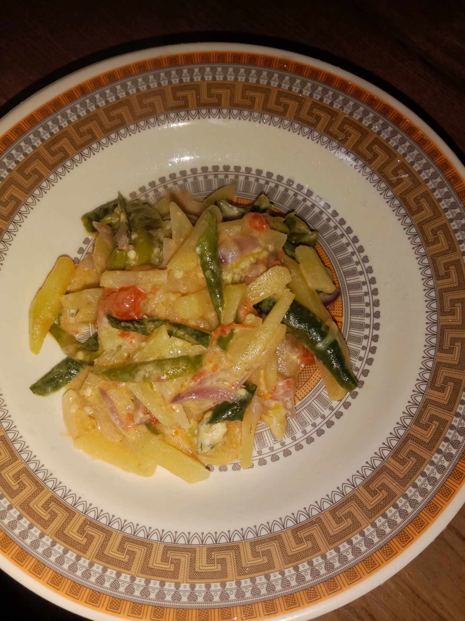 '게와 다치'는 부탄의 전통 요리입니다. 종카어(부탄어)로 ཀེ་བ་དར་ཚི་라고 쓰며, 감자(게와)와 전통 치즈(다치)를 주재료로 만듭니다. 에마 다치(고추와 치즈로 만든 요리)보다는 덜 맵습니다.