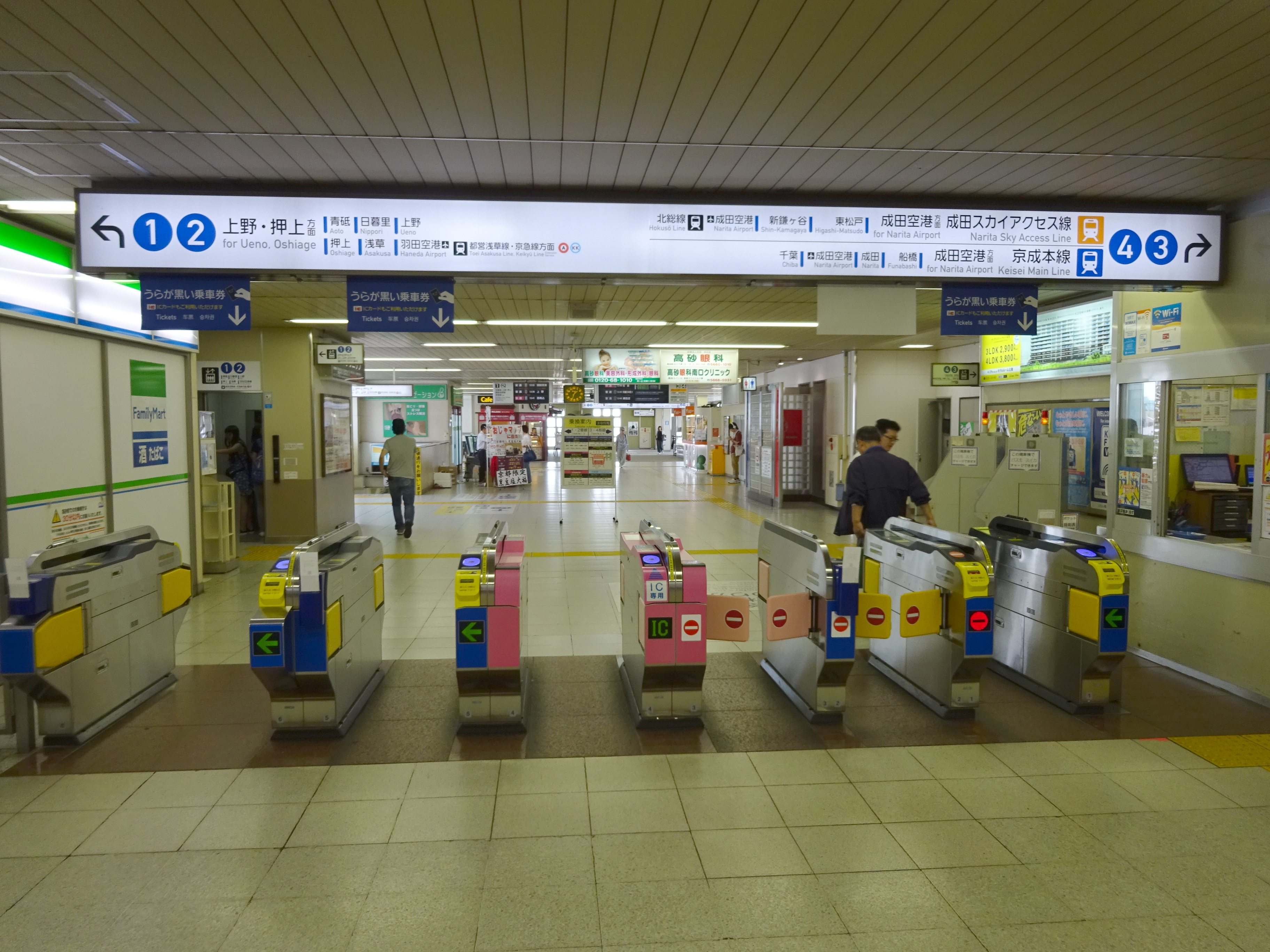 게이세이 우에노역의 게이세이 본선 기점으로부터 12.7km 떨어져 있다.[2] 섬식 승강장 2면 4선(지상)과 단선 승강장 1면 1선(고가)을 갖춘 교상역이다.[2] 고가 게이세이 가나마치선 승강장은 2010년 7월 5일에 개통되었다.[3]